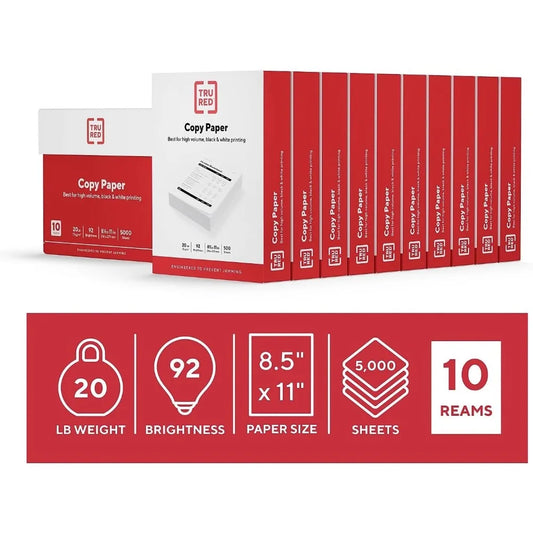 White Copy Paper 8.5x11 Inch 20lb 92 Brightness 5000 Sheets 10 Reams for Laser Inkjet Copier Multipurpose Printer Paper