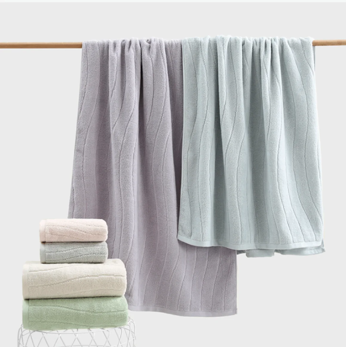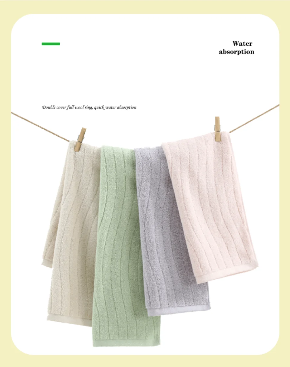 This 2-piece towel set, made from 100% cotton, includes a bath towel and a hand/face towel designed for exceptional absorption within 15 to 20 seconds. Woven with yarn-dyed terry fabric, these plain, rectangular towels offer softness and durability for everyday bathroom use. Free from harmful chemicals to provide a reliable and comfortable experience for your daily routine.