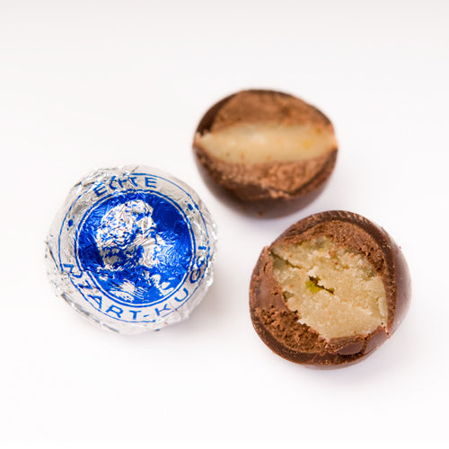 Other than Mozartkugeln and Mozart Balls, you may hear the chocolate treats called Mozart-Bonbons or Mozart Chocolate. Mozartkugel is a small chocolatey nougat ball, which can quickly become your new chocolate obsession. While there are variations, traditional Mozartkugel is an exquisite delight. Here at Dallmann we use the best ingredients, the finished Mozartkugel is a unique taste experience. Though challenging to make, our Mozartkugel is simply one of the highest quality indulgences that you’ll ever taste.
