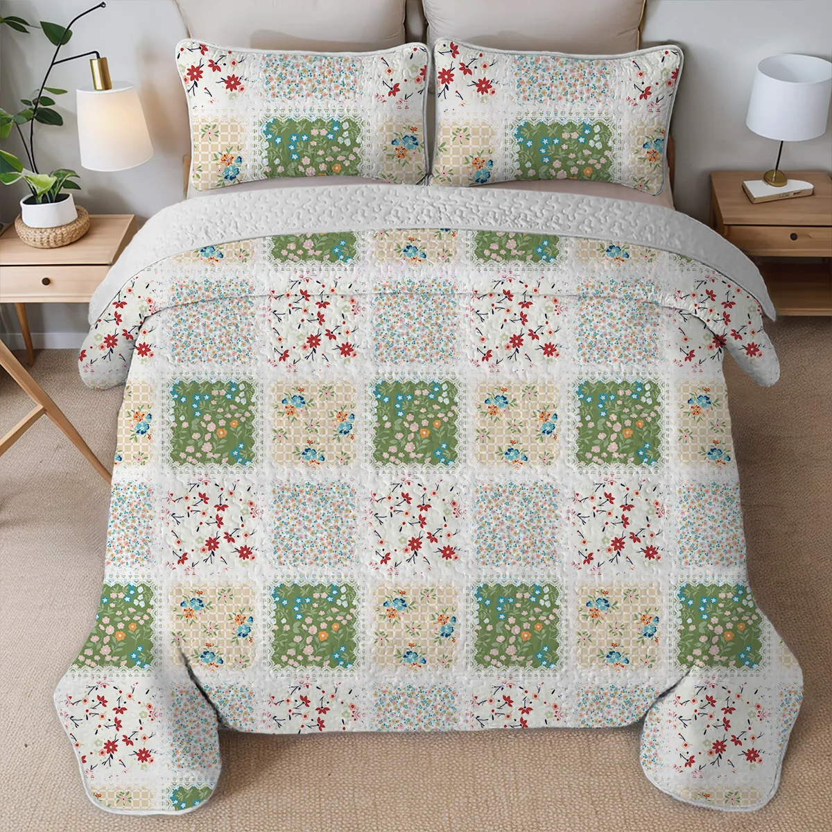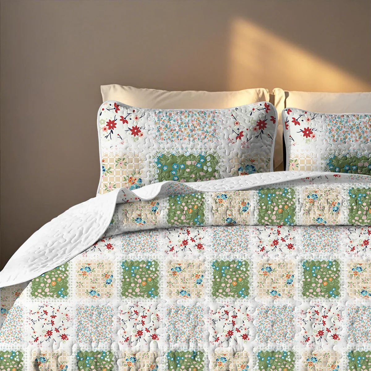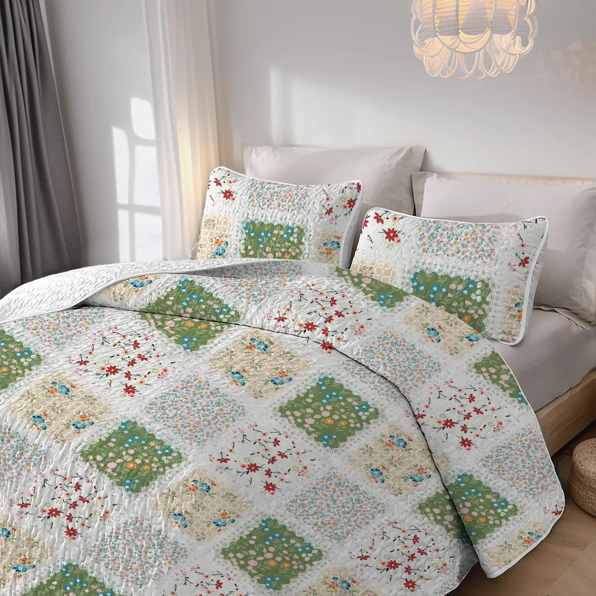 2/3-Pcs Geometric Grid Printed Quilt Set, Cal King, Durable, Breathable