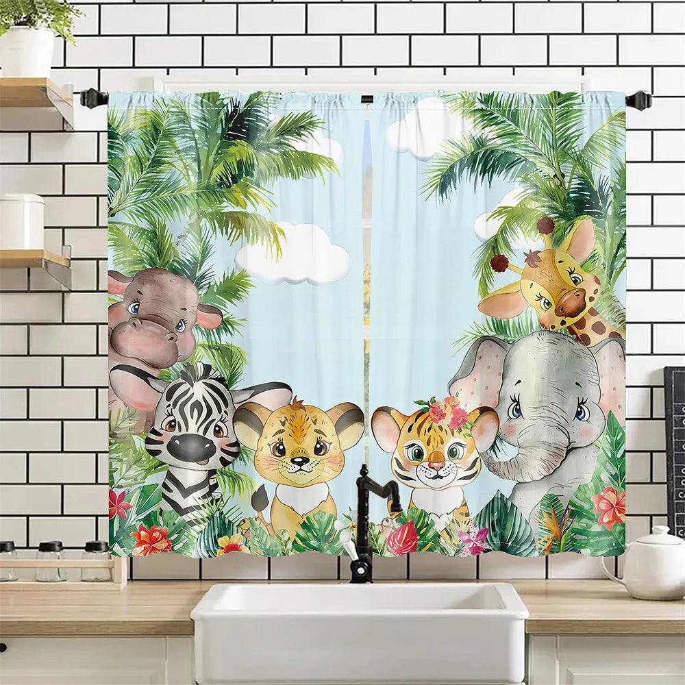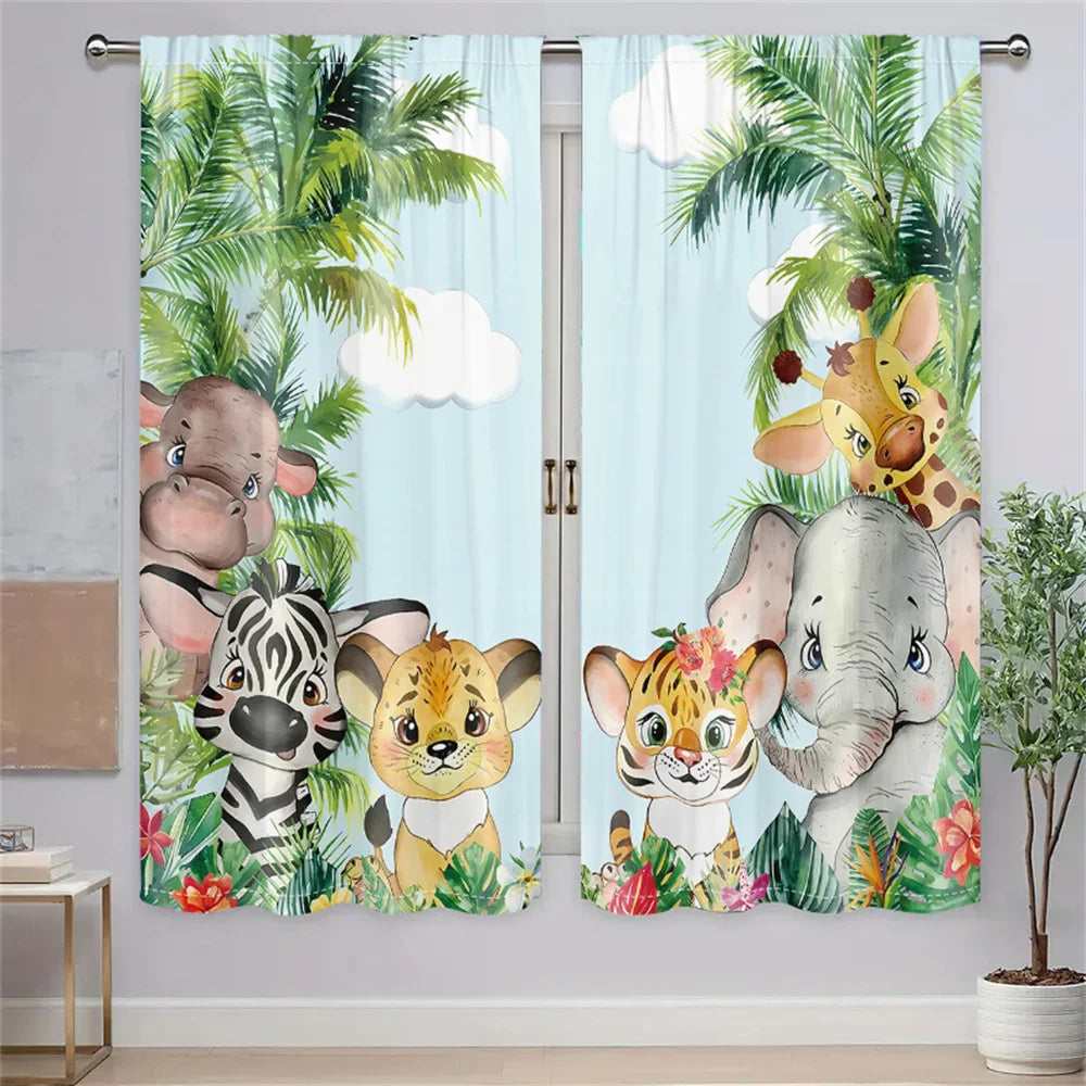 2Pcs Tropical Jungle Animal Cartoon Curtains Living Room Bedroom Window Decor or Kids Room