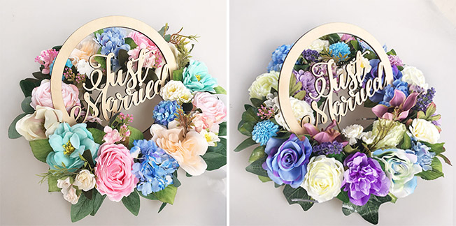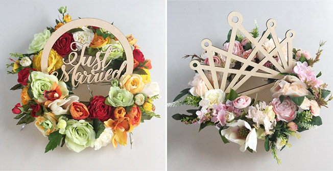 Experience the beauty of vibrant artificial floral car wreath decorations for your special day! Featuring various flower and grass species, this unique design adds a touch of elegance to any wedding style. Don't miss out on this must-have accessory for your celebration!