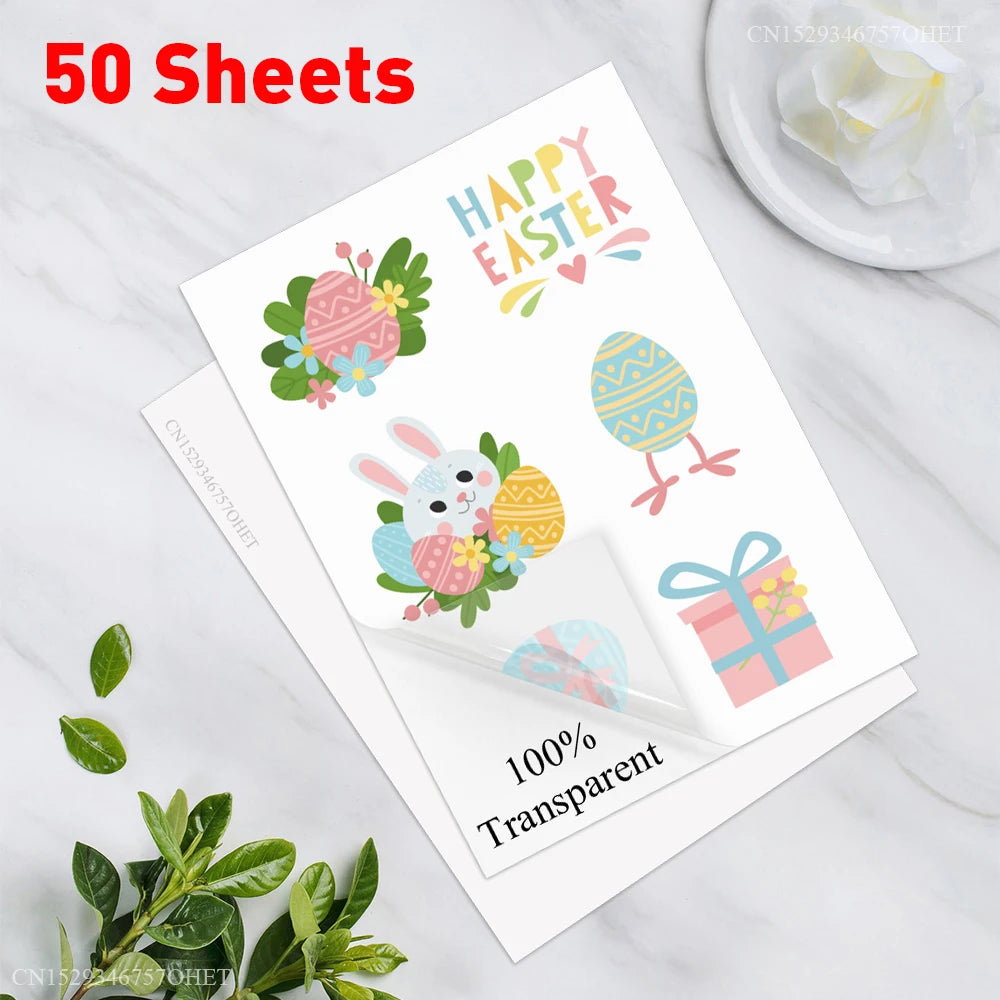 50 Sheets A4 Sticker Paper for Printer Inkjet/Laser Printer Vinyl Paper Sticker Self Adhesive Gift Stationery Label Stickers DIY