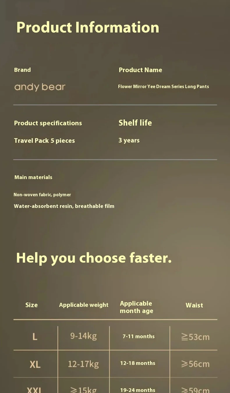 These disposable training pads are designed for babies aged 1 to 3 years, suitable for both boys and girls weighing between 13 to 18 kg. Made from breathable non-woven fabric and absorbent polymer resin, they offer quick-drying comfort without harmful chemicals. Each pack contains 5 pieces, providing reliable protection during potty training.