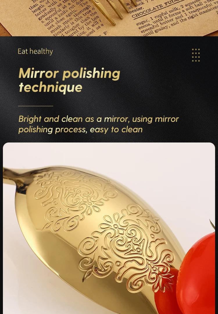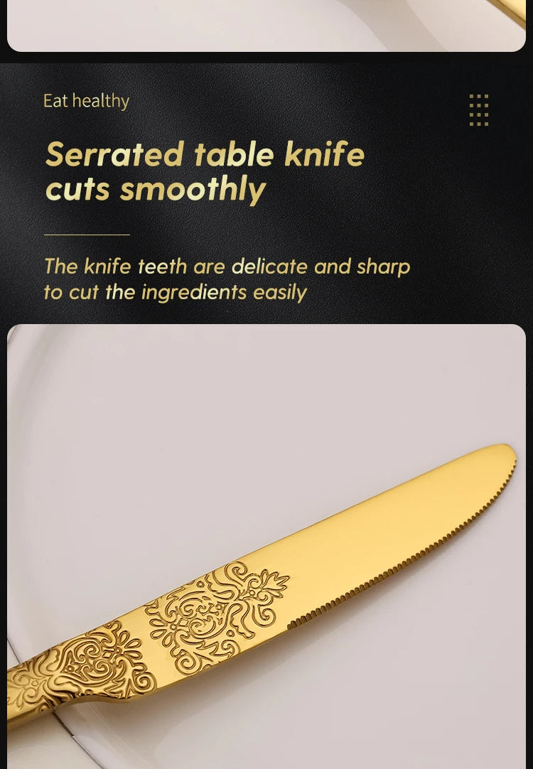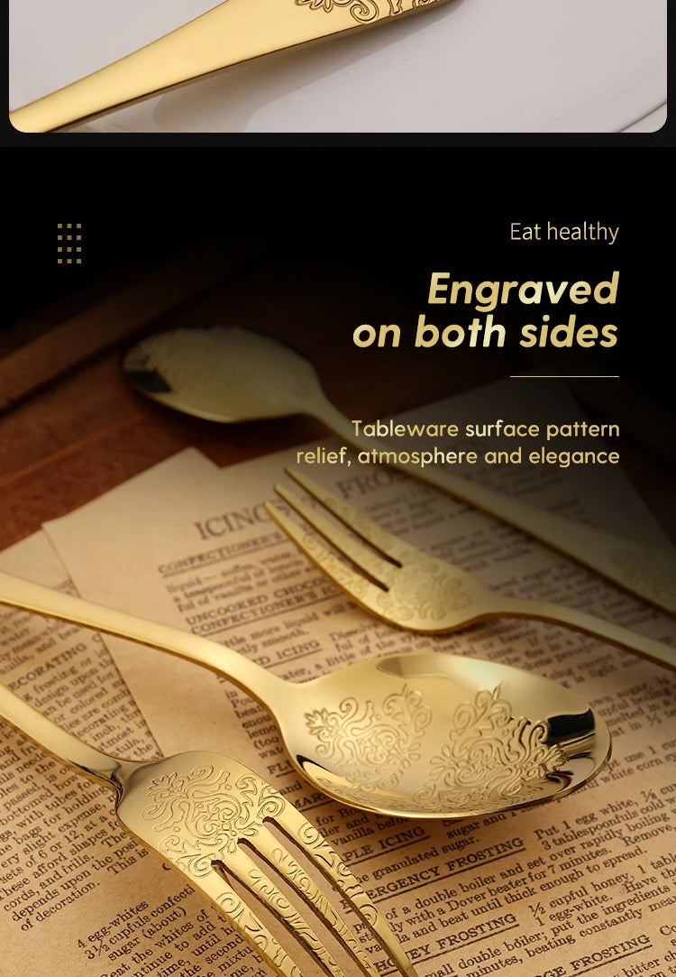 5Pcs Cutlery Set Stainless Steel Tableware Carving Golden Dinnerware