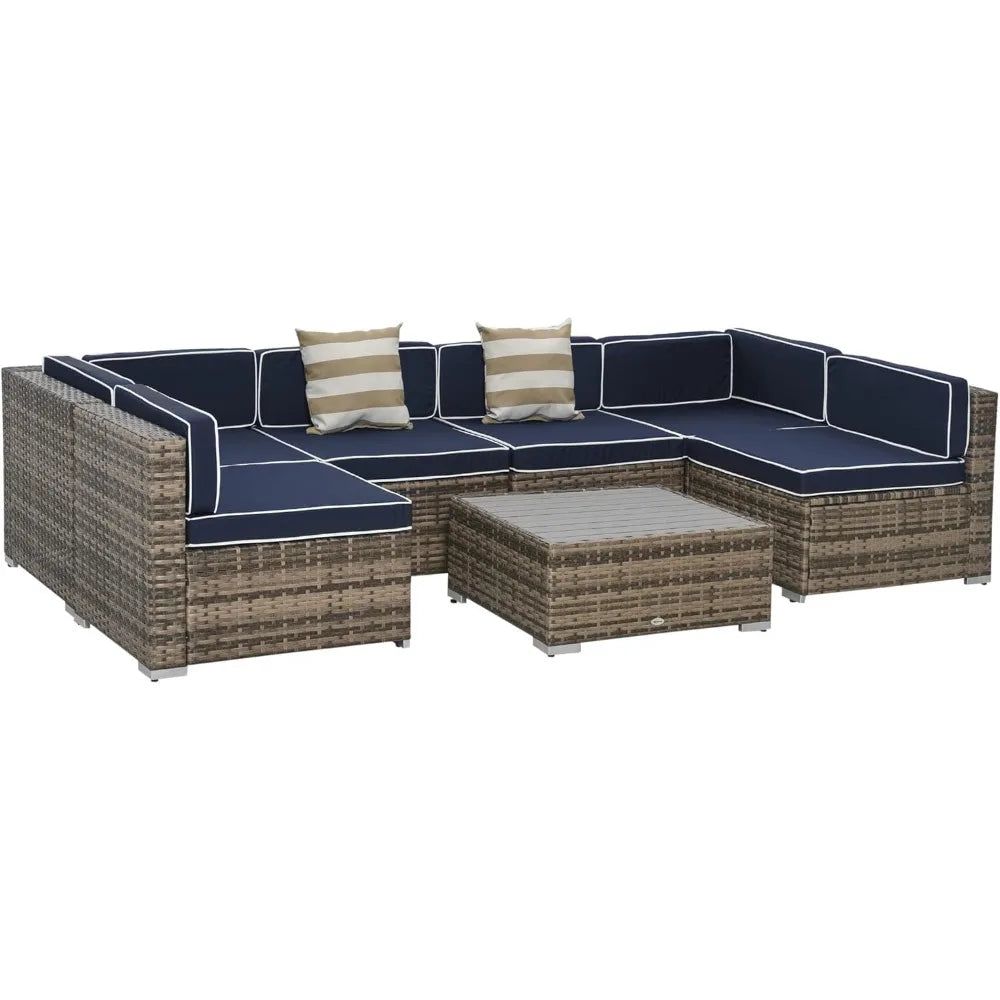 - Patio Sectional Sofa: Our seven-piece patio sectional furniture set has two corner couch sections, four center couch sections, and a slatted coffee table. Rearrange and seat up to six in many ways.
