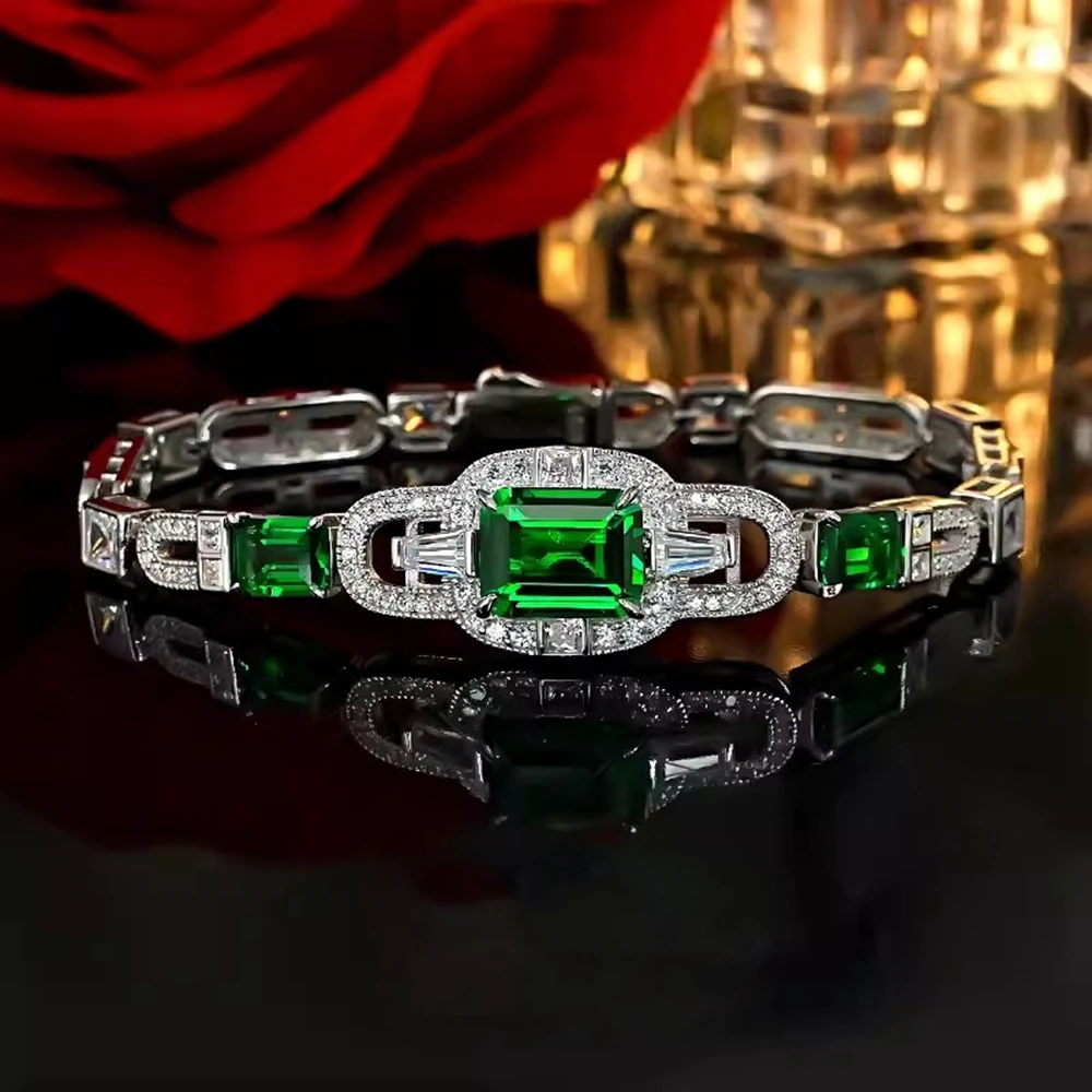Vinregem 8*10 MM 4CT Emerald High Carbon Diamond Gemstone Vintage Bracelets for Women 925 Sterling Silver Fine Jewelry Wholesale