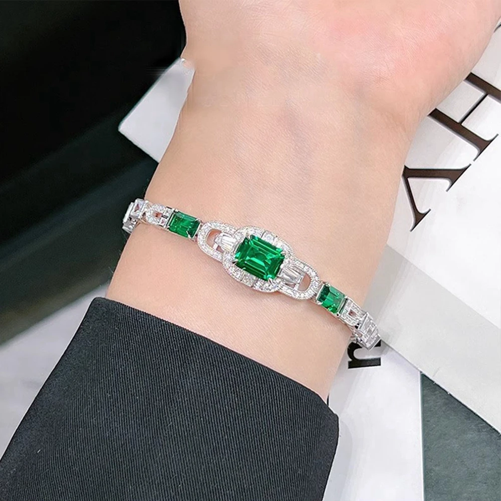 4CT Emerald High Carbon Diamond Gemstone Bracelets 925 Sterling Silver Fine Jewelry