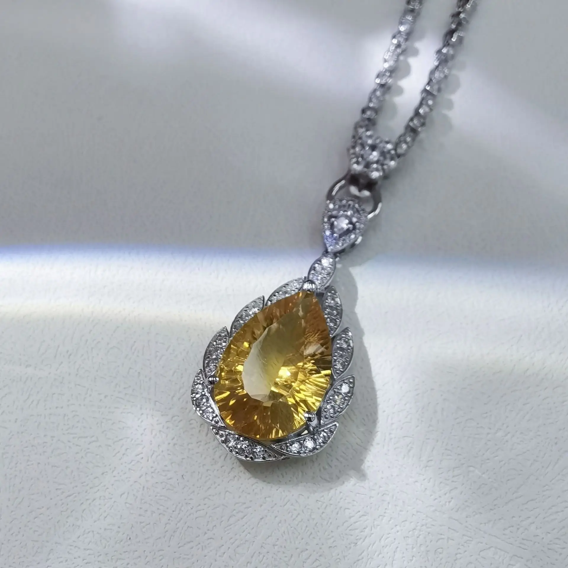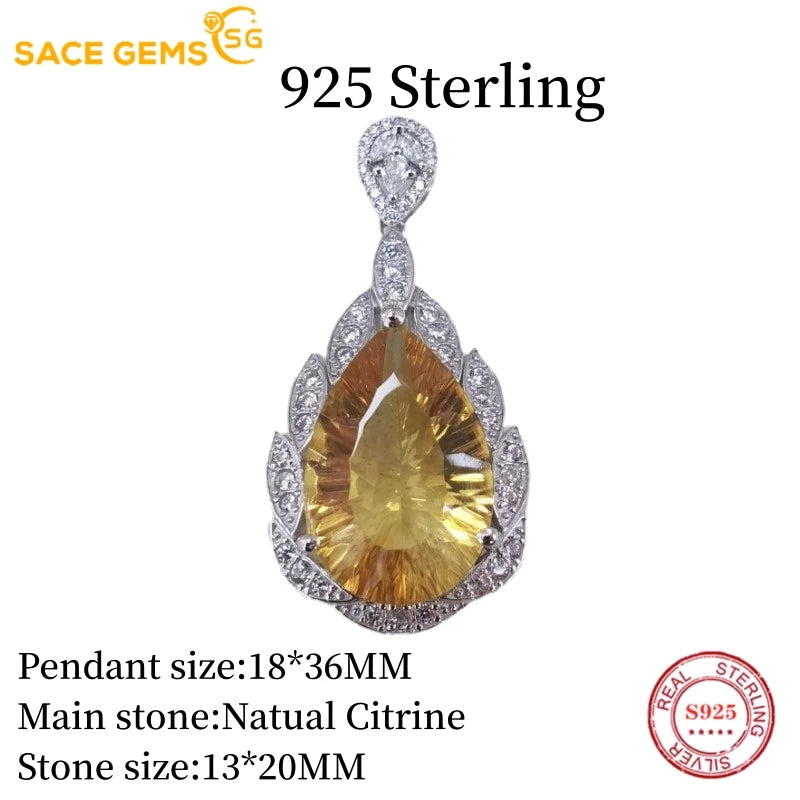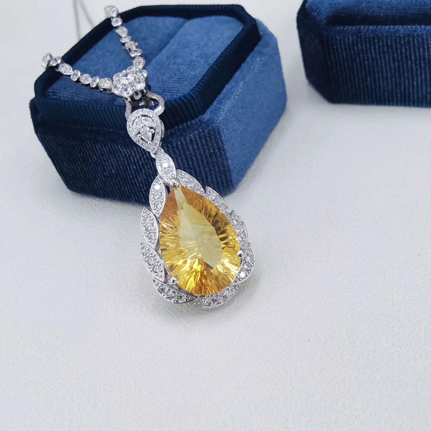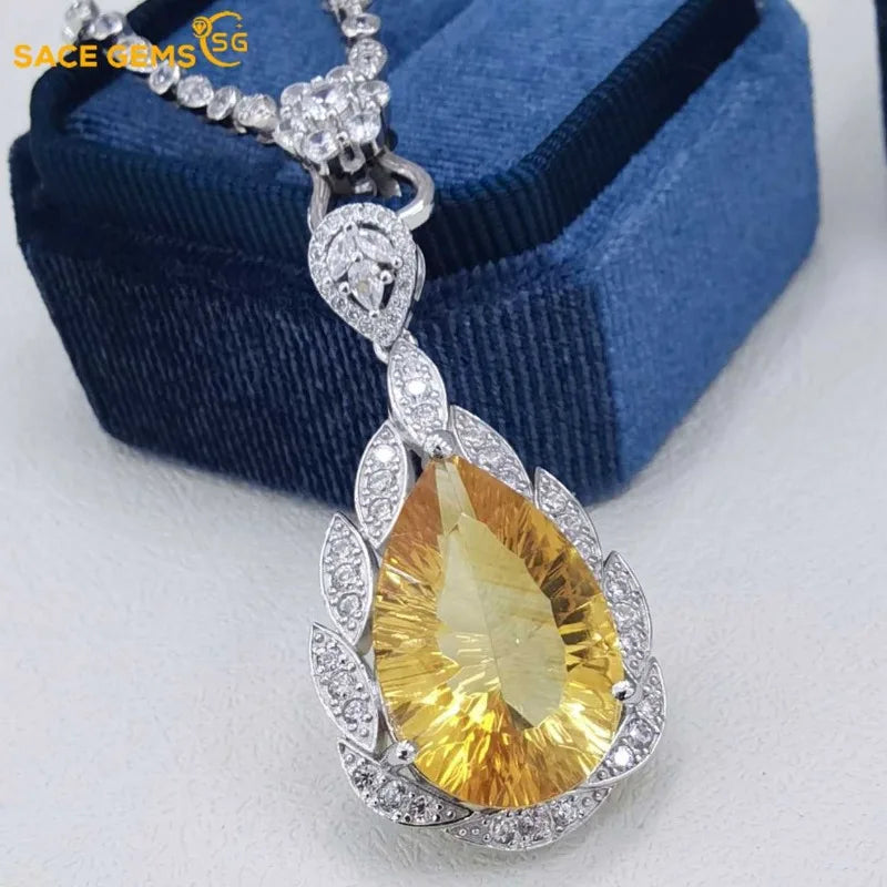 925 Sterling Silver Certified 13*20MM Natural Citrine Pendant Necklaces for Women Fine Jewelry