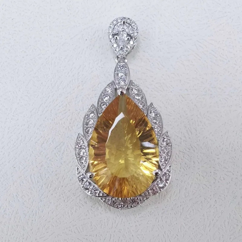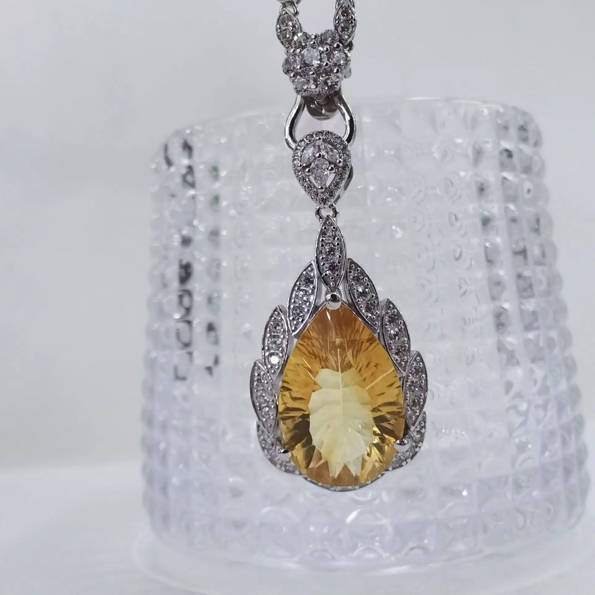 This stunning 925 Sterling Silver Certified 13*20MM Natural Citrine Pendant Necklace for women is a must-have for any fine jewelry collection. The shining silver metal, adorned with a vibrant citrine gemstone in a unique geometric shape, weighs 6g and is certified by a third party appraisal. This trendy and stylish necklace is the perfect gift for special occasions like anniversaries, engagements, or weddings, and is sure to impress and captivate moms, wives, fiancées, girlfriends, and daughters. Don't miss out on adding this gorgeous piece to your collection and making a statement!
