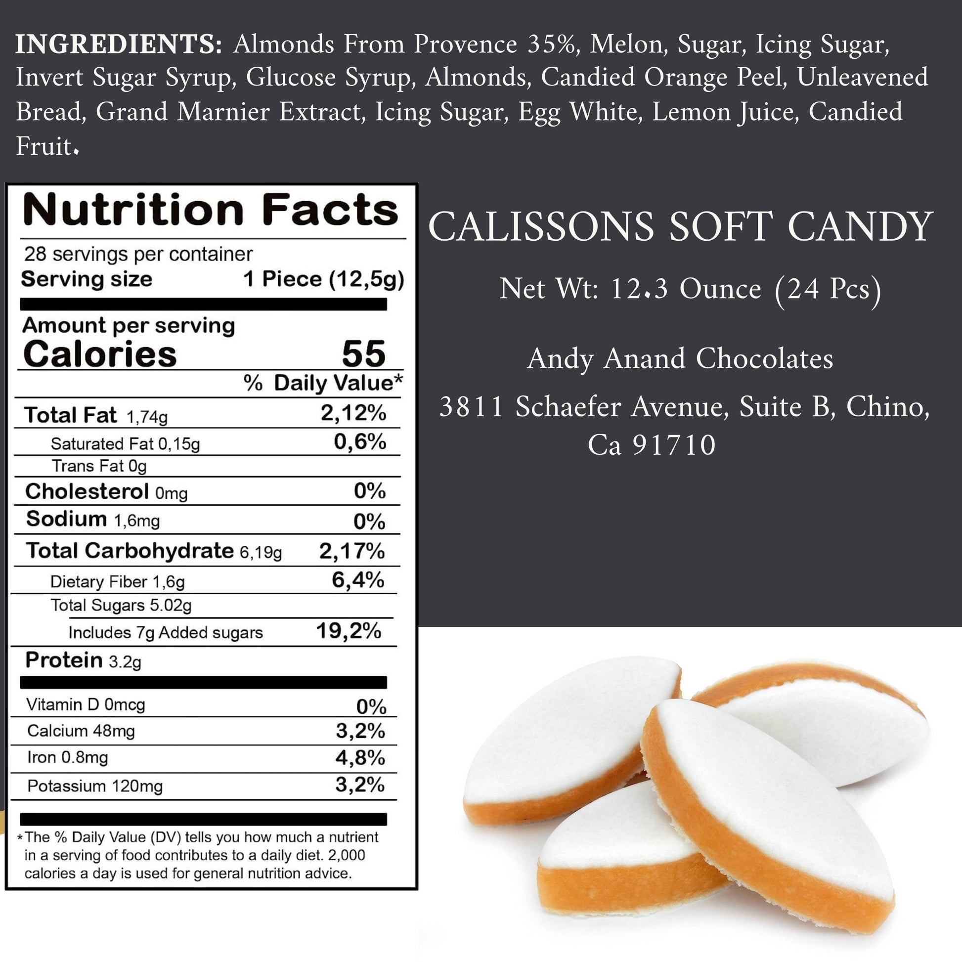 Andy Anand Calissons de Provence, 28 Pcs Soft Almond Paste with Candied Melon and Orange Calisson (12.3 oz), Sweet Delight: Imported, French Candy Box for Any Occasion