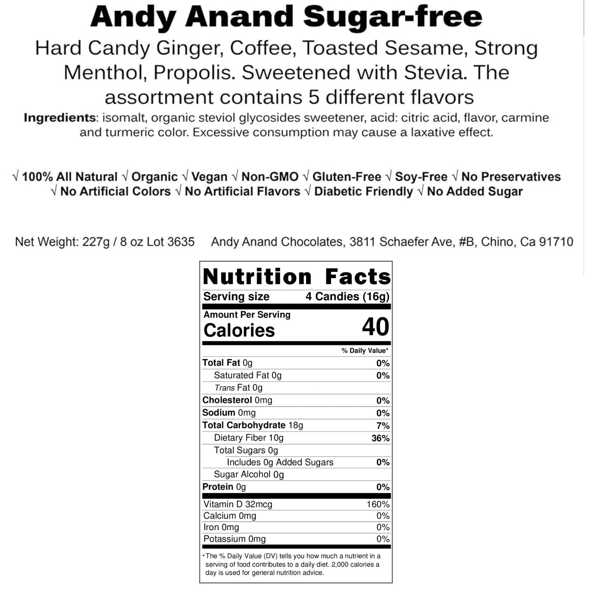Andy Anand Sugar Free Hard Candy Variety Pack – Ginger, Coffee, Sesame, Menthol, Propolis, Stevia, Gluten Free, 85 Pcs 7 Oz