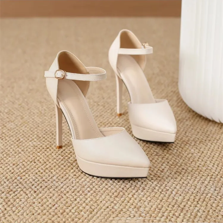 Ankle Straps Women's Sandals 12Cm Pointed Toe Platform Pumps Matte Leather Heels Size 33 42