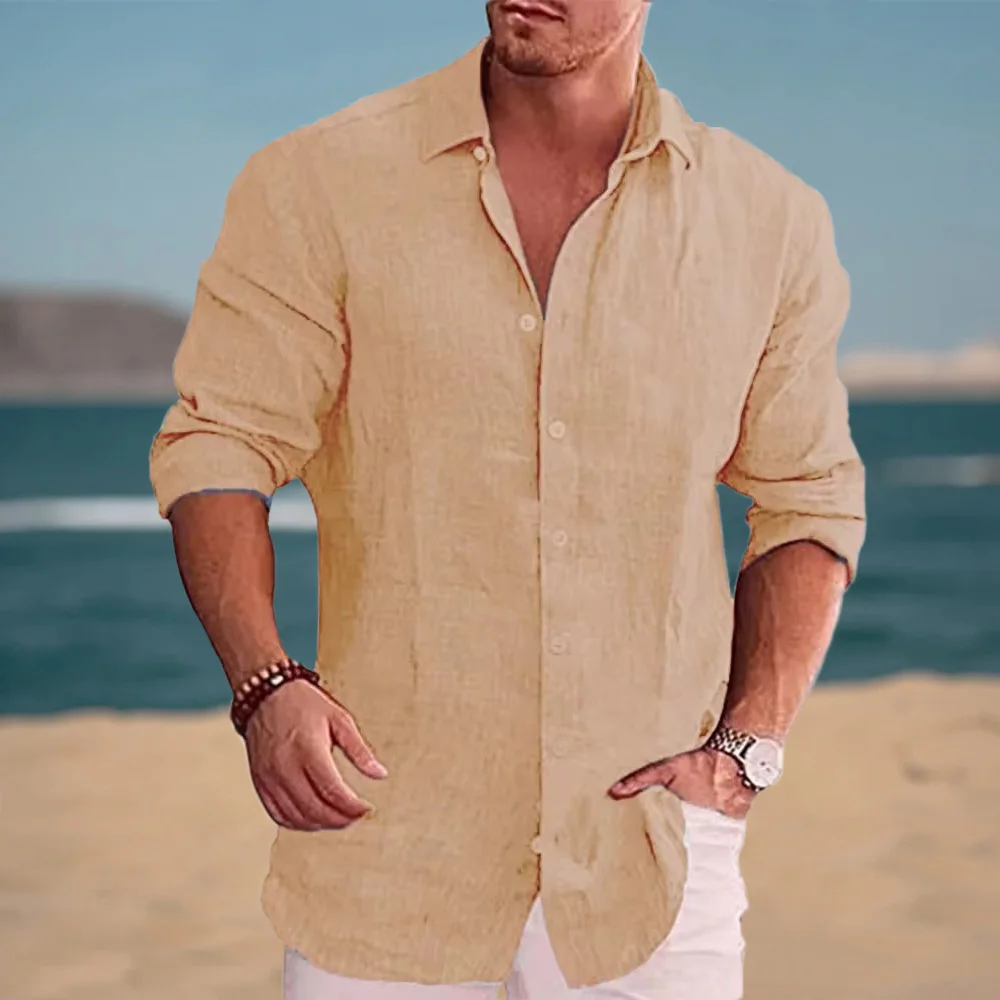 Autumn Men's Long Sleeve Shirt Cotton Linen Breathable Solid Color Casual Style Plus Size
