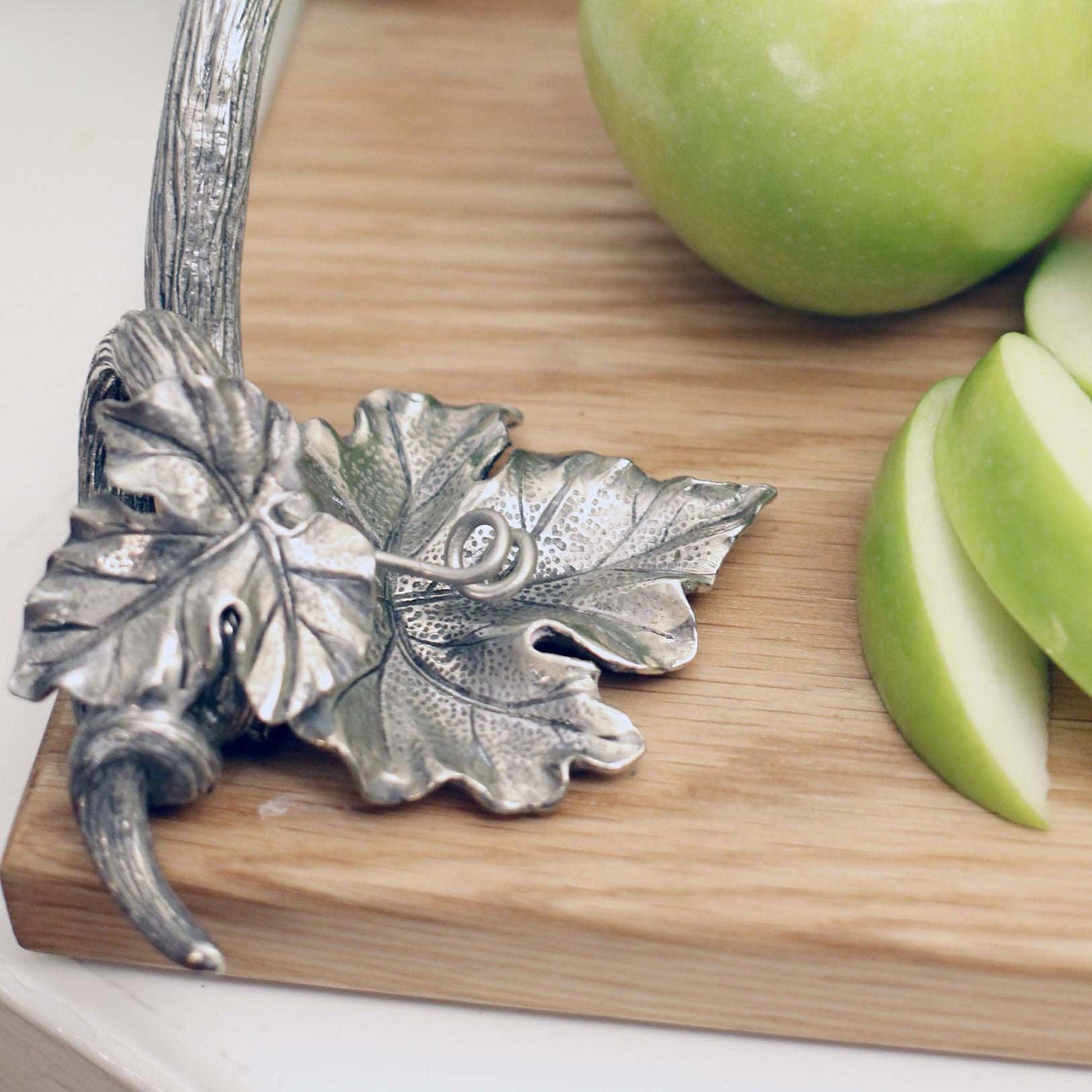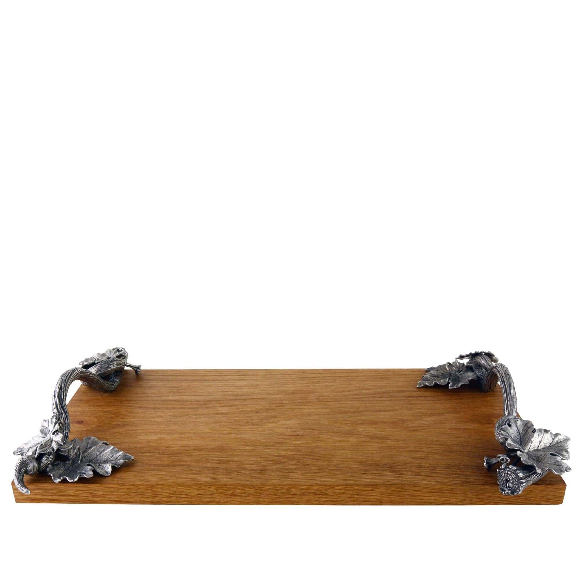Prepare for a stylish dining experience with Vagabond House’s Autumn Vine Cheese Board from the Harvest collection. This unique cheese board is crafted from rich oak and features intricate pewter designs, reflecting the splendour of the harvest season. Its generous size of 10"W x 18"L x 3"T makes it perfect for lavish entertaining events. The artfully detailed leaves that adorn each handle add an extra touch of luxury to your table setting.