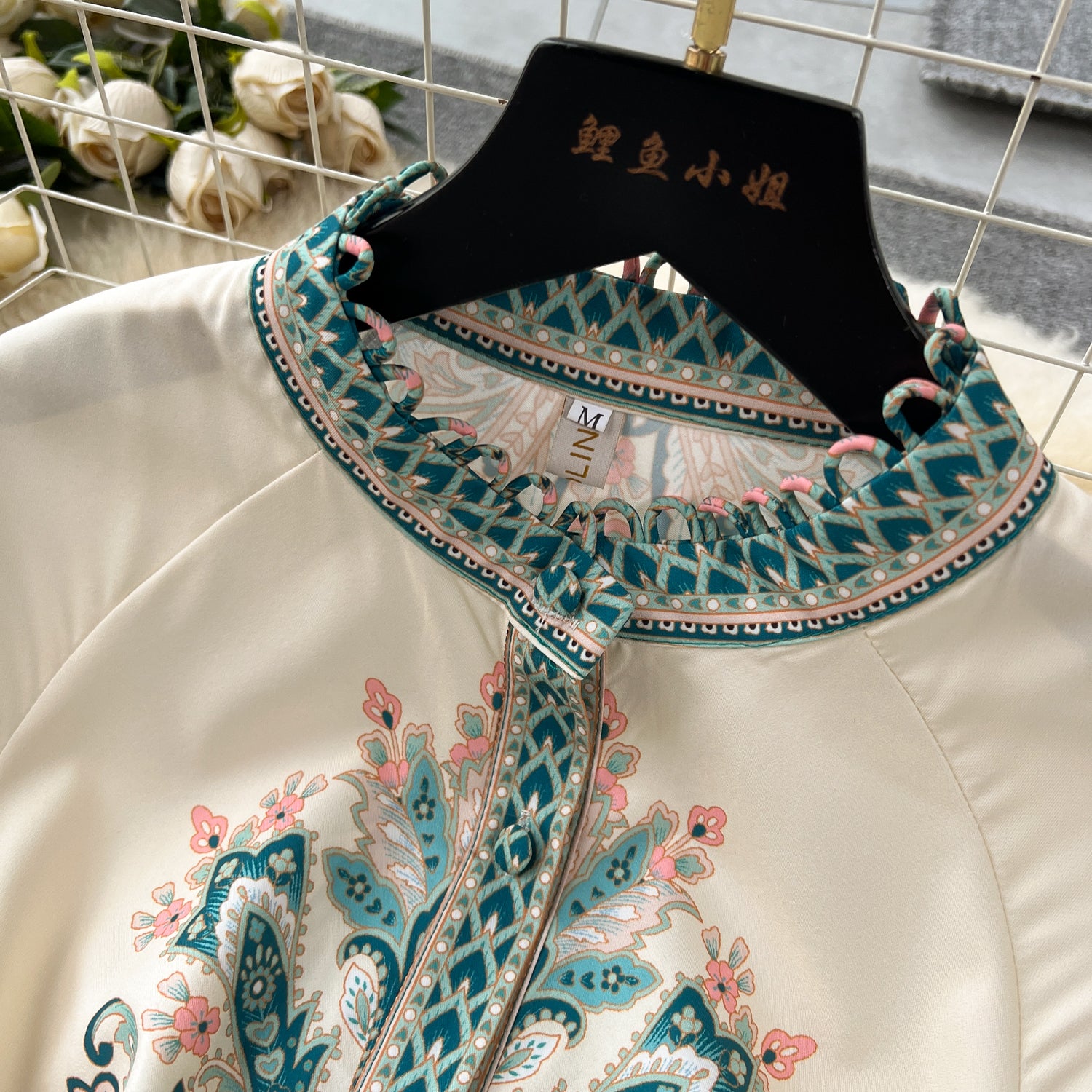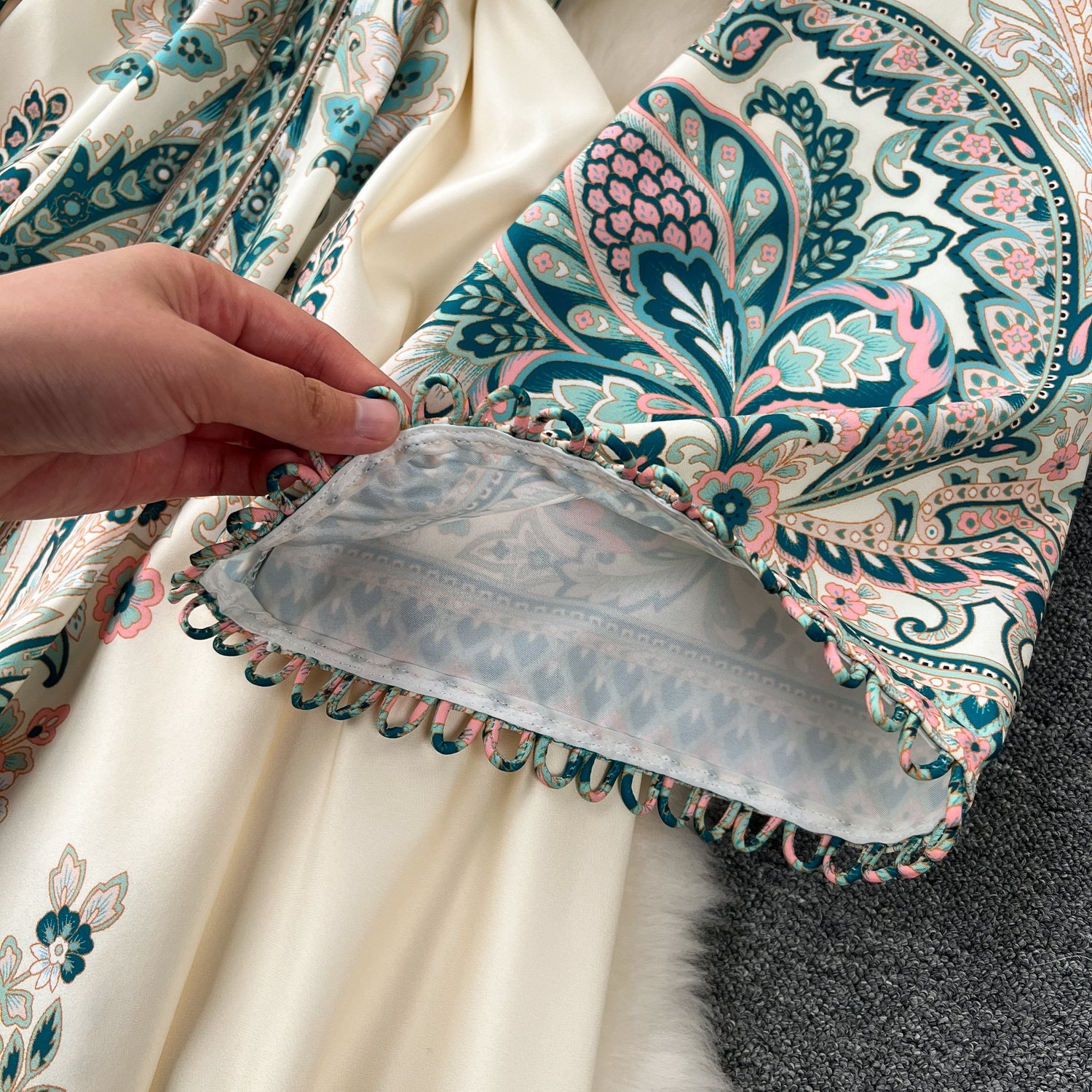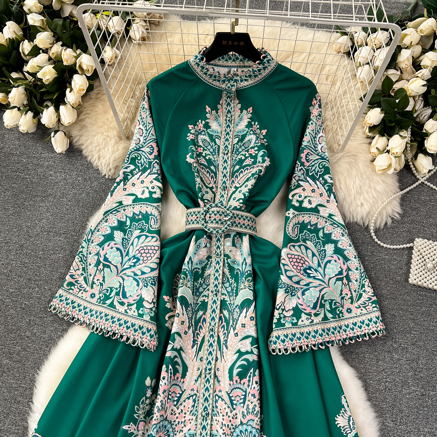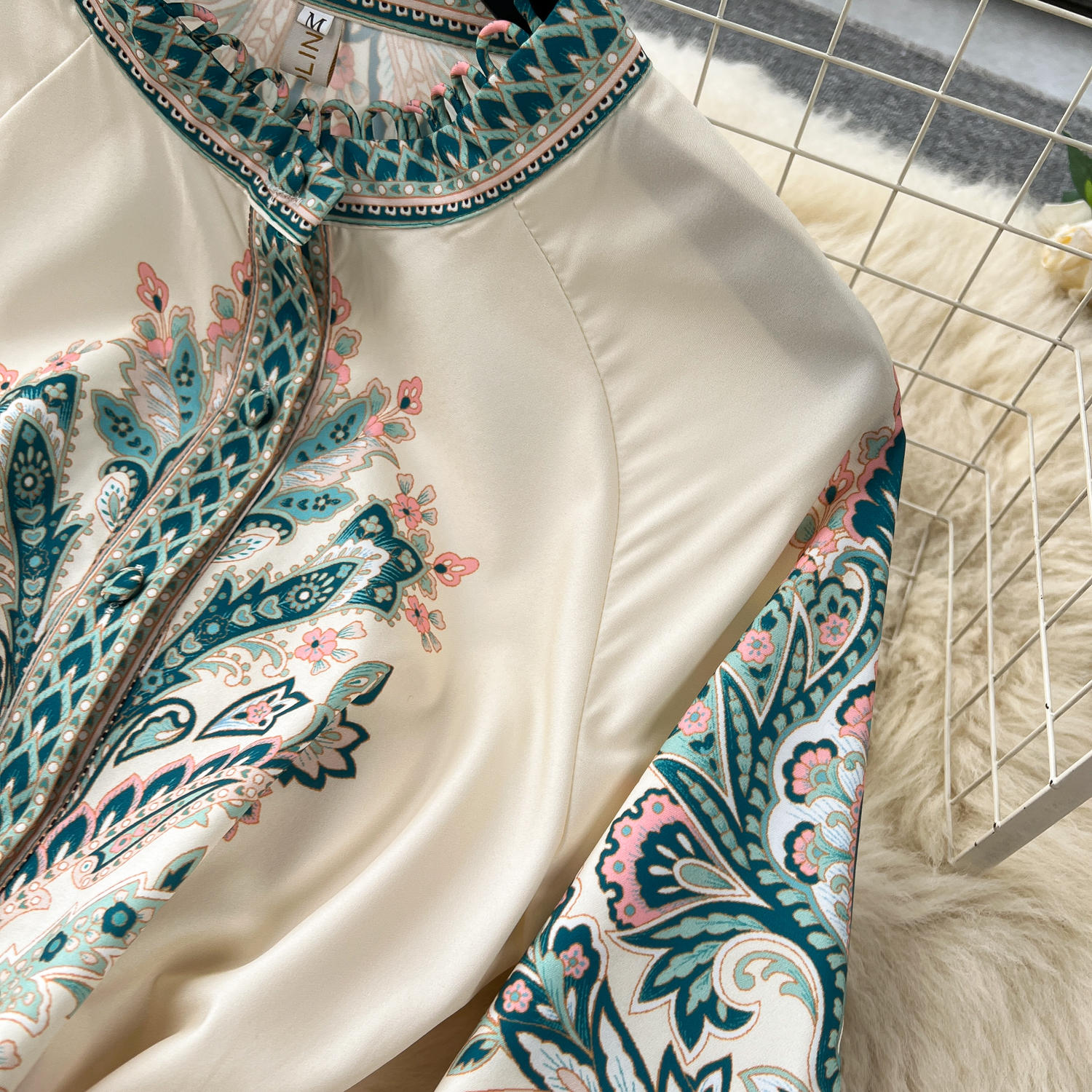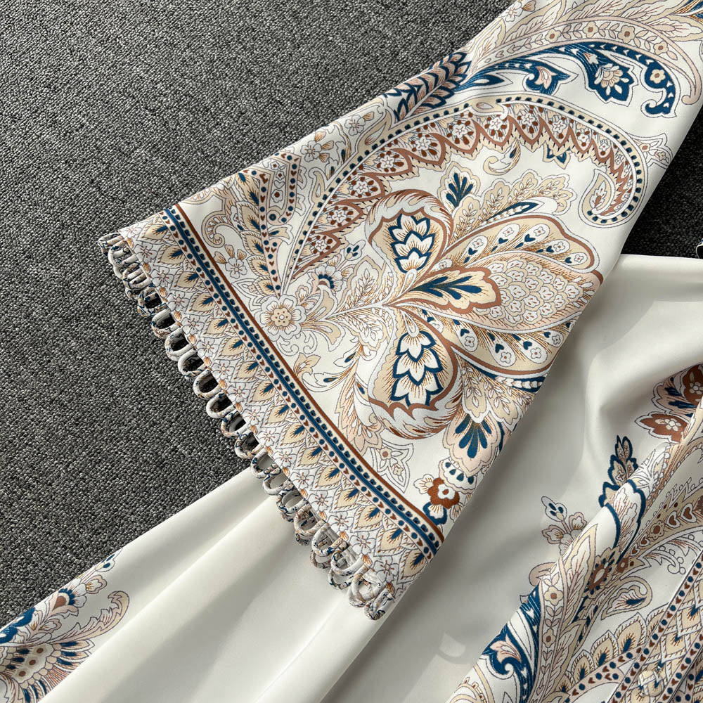 Vintage Print Robe Paisley Maxi Dress Lantern Sleeve