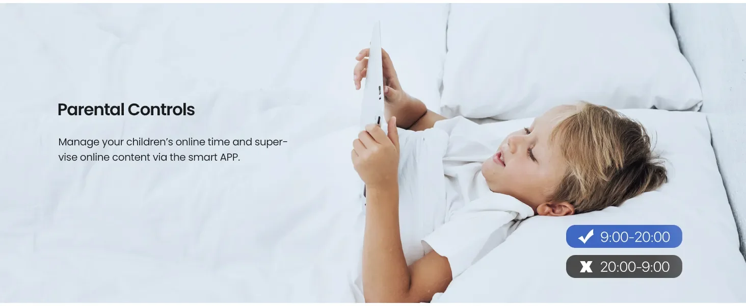 Use your smartphone to quickly set up guest access, online period time, and speed limit.