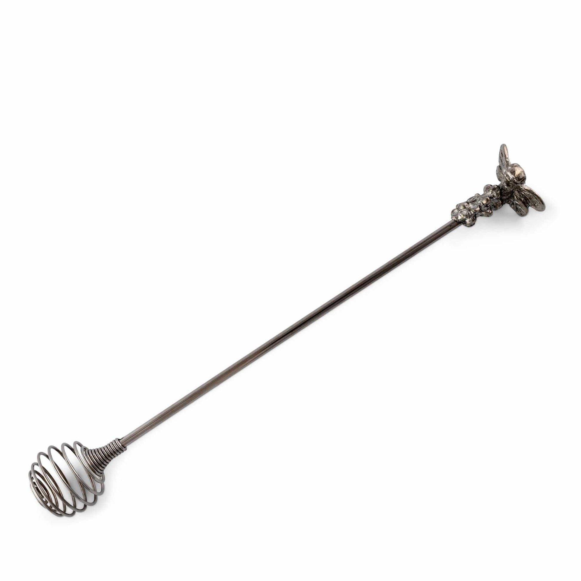 Introducing the designer Bee Honey Stirrer from the Arche of Bees Collection by Vagabond House—a treat for honey lovers. With exceptional craftsmanship, this unique honey drizzler is made of our signature pewter and mango wood. It features a delicate honeybee perched at the end of the handle, while a spiraling head ensures the perfect drizzle. The compact size makes it ideal for adding the right amount of sweetness to your drink. This remarkable piece effortlessly merges sophisticated design and functionality—certainly a great addition to any kitchen ensemble and an ideal gift for the sophisticated host.