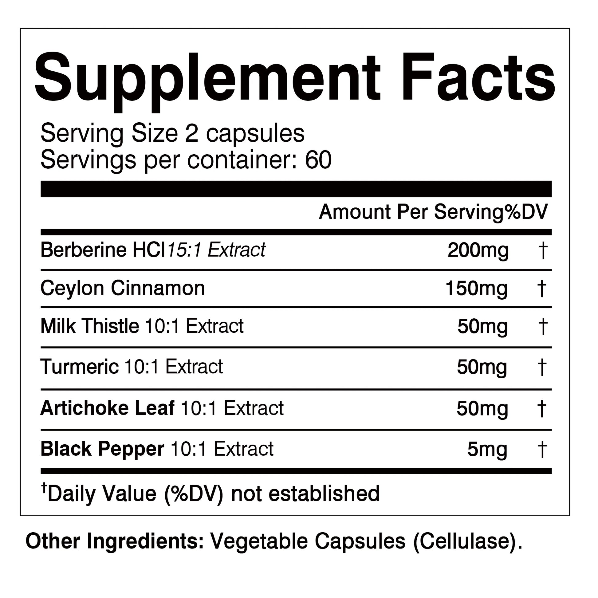 Premium Ingredients - Our capsule formula is 4700 mg: Berberine, Ceylon Cinnamon, Milk Thistle, Turmeric, Artichoke Leaf, Black Pepper, known for promoting heart health, healthy liver function, and rich in antioxidants.