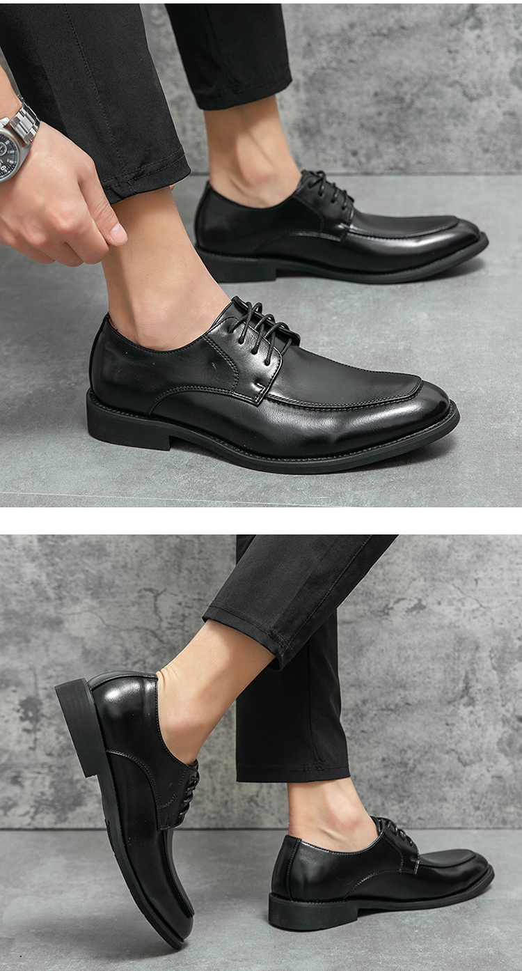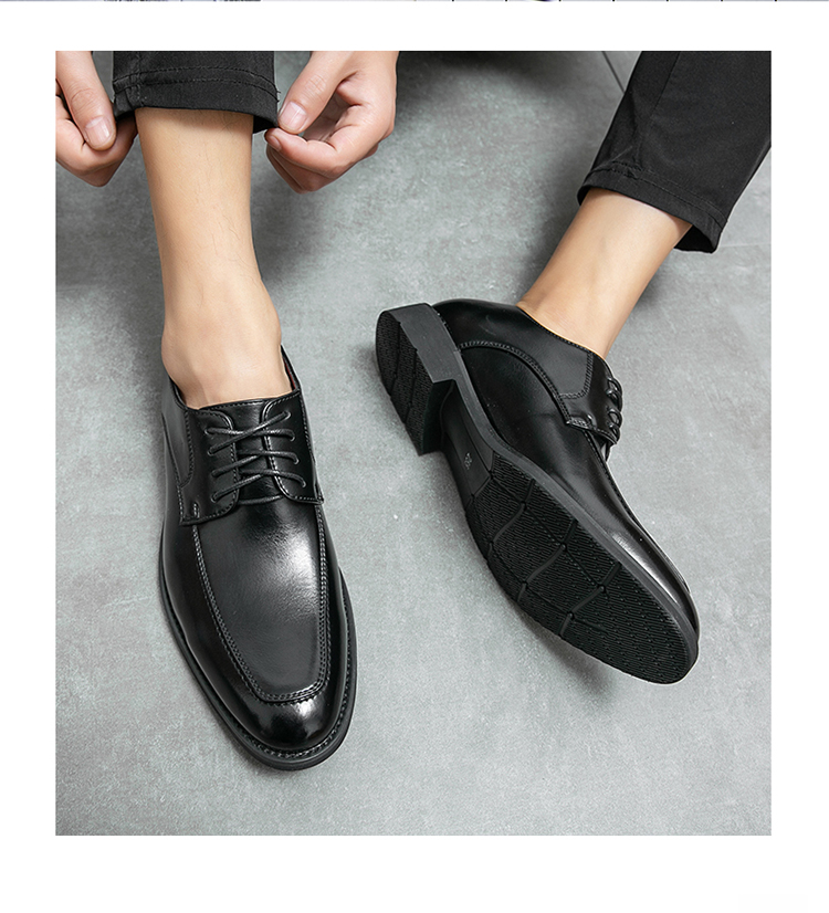Made with ultrafilm leather and high-quality adhesive material, these Black Casual plus Size Men's Shoes are expertly crafted as derby shoes for a sophisticated look. Featuring a lace-up closure and a solid color design with stitched leather patches, these shoes are perfect for both young and middle-aged individuals. The low heel (less than 3cm) and flat rubber sole provide comfortable daily wear, making them suitable for spring and fall. These shoes are exclusively available through online sales channels.