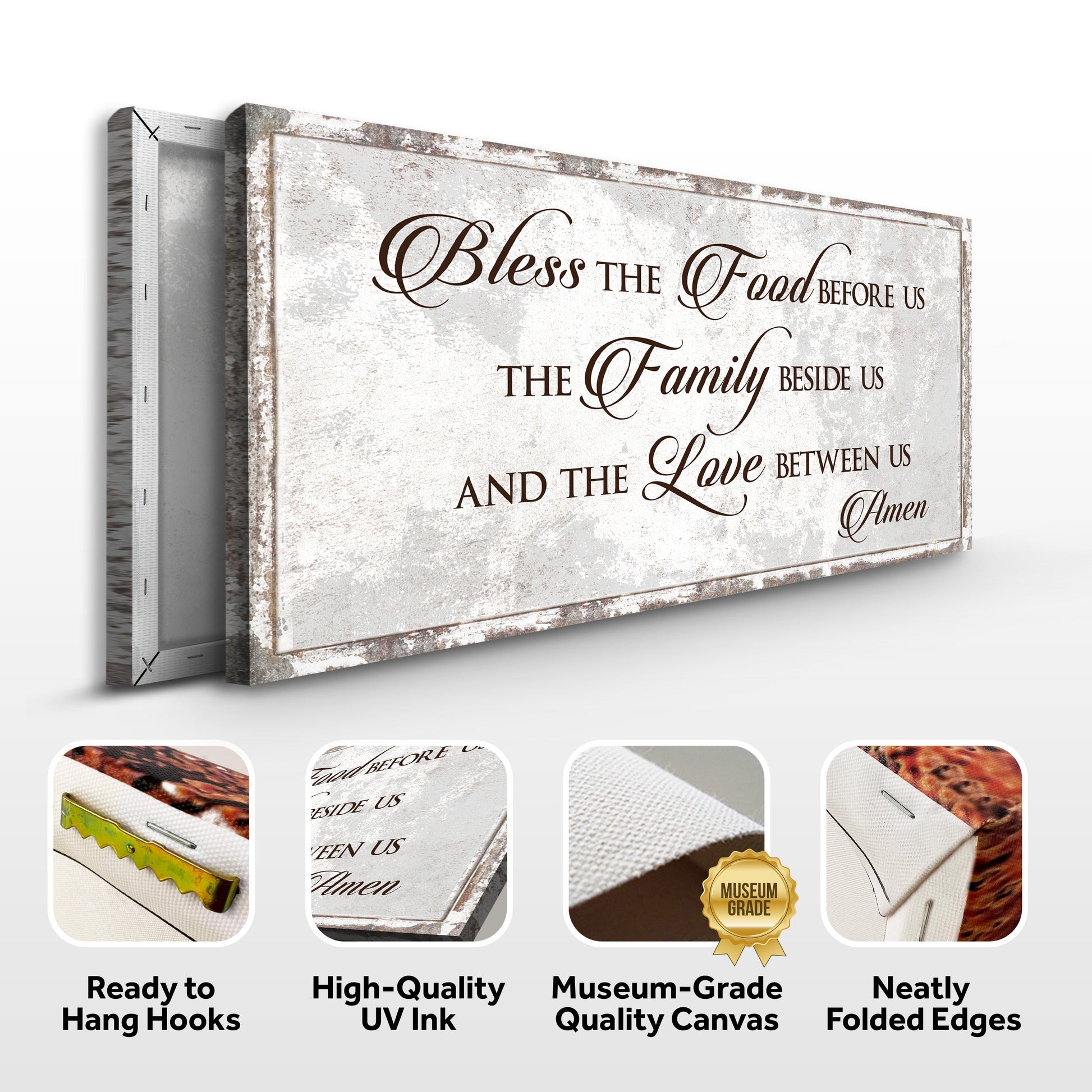 The printed design of this Bless Our Food, Family, And Love wall art is printed using UV-resistant ink on a thick premium canvas. The Bless Our Food, Family, And Love canvas wall art is ideal for creating an artistic ambiance in your home. Visit our collection choices of Bless Our Food, Family, And Love signs right now to pick the one that best suits you and your living space.