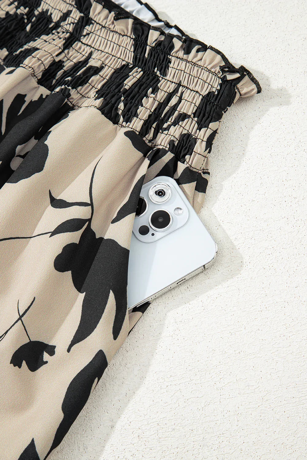 - Embrace boho chic with wide leg pants, featuring a delicate floral print.