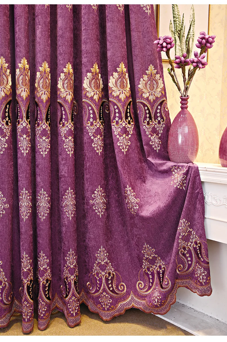 Blue Thickened Embroidery Chenille Shading Curtains for Living Room Bedroom Partition Curtain