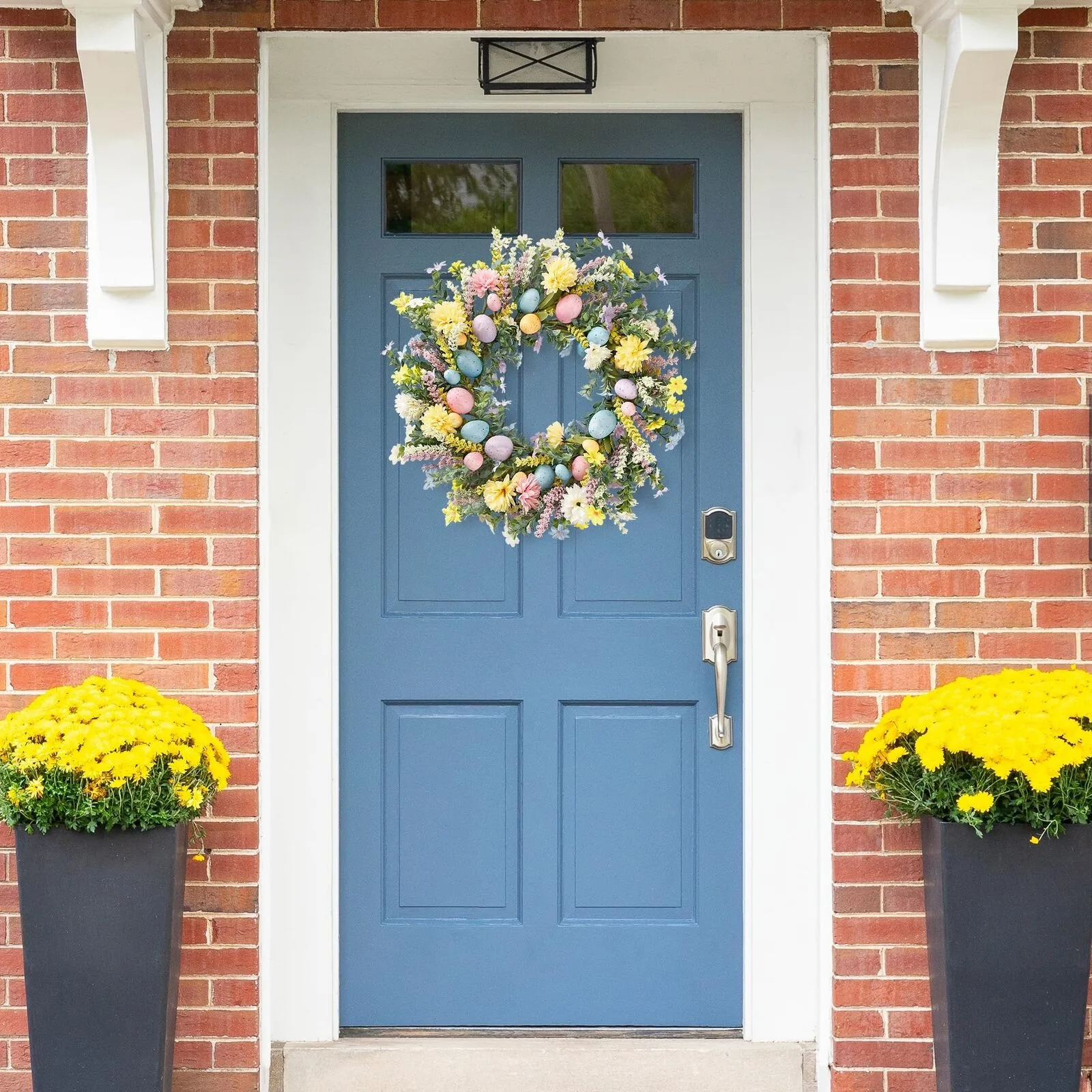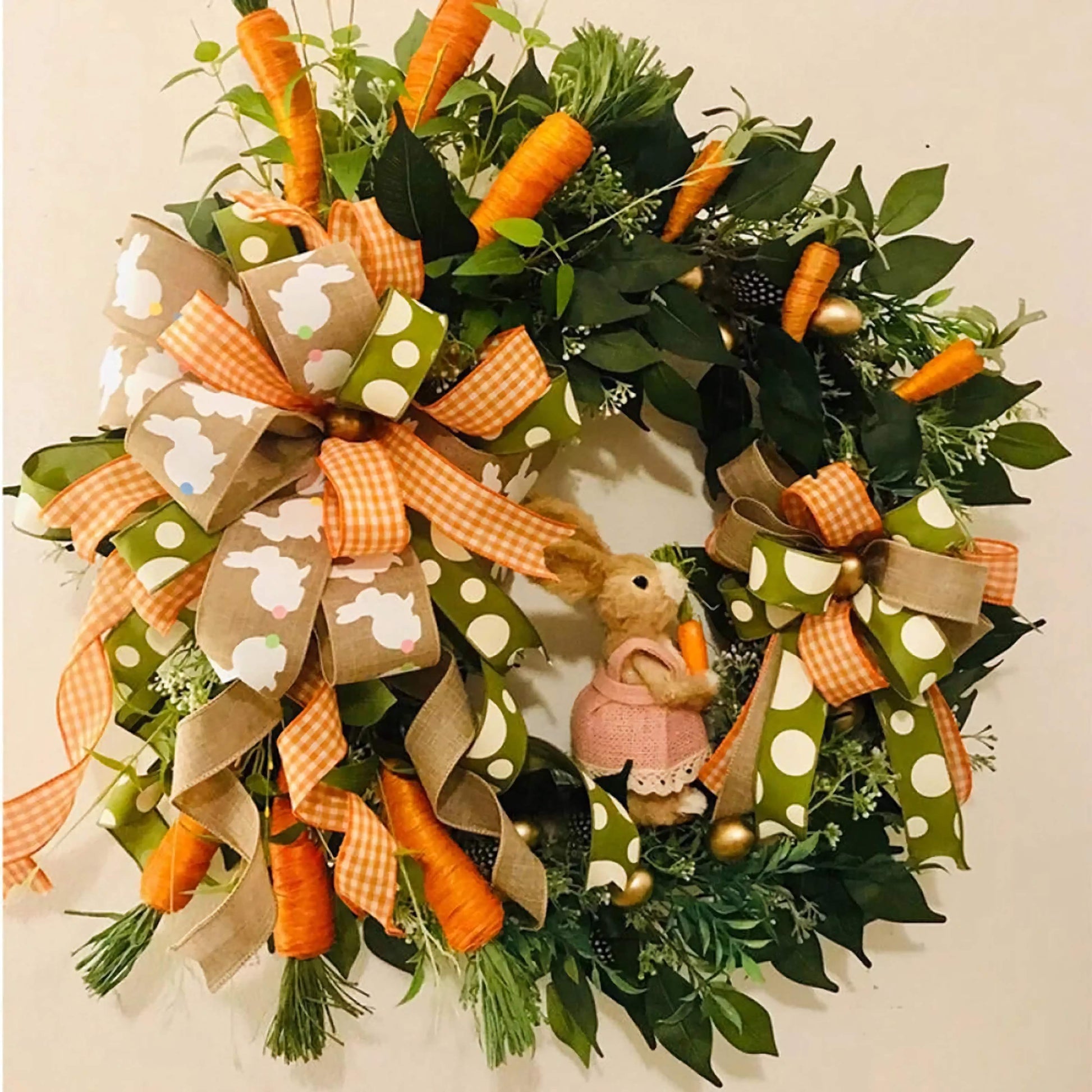 Bow Ribbon Easter Eggs Wreath Front Door Decor