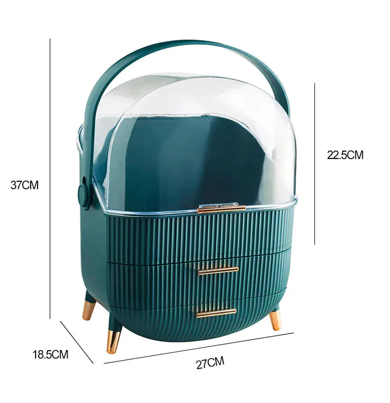 The spacious main compartment features a protective lid, allowing you to store taller items securely, while the drawers provide a convenient spot for smaller products. No more worrying about scratches or damages - this organizer ensures that your beloved items stay safe and well-organized at all times.