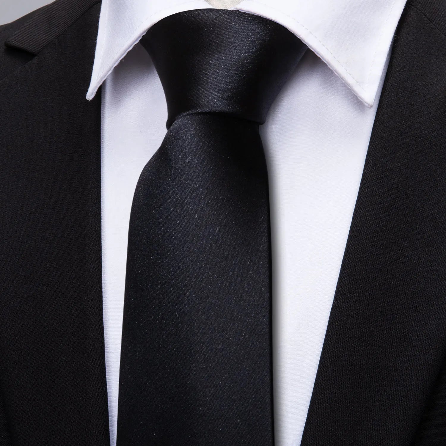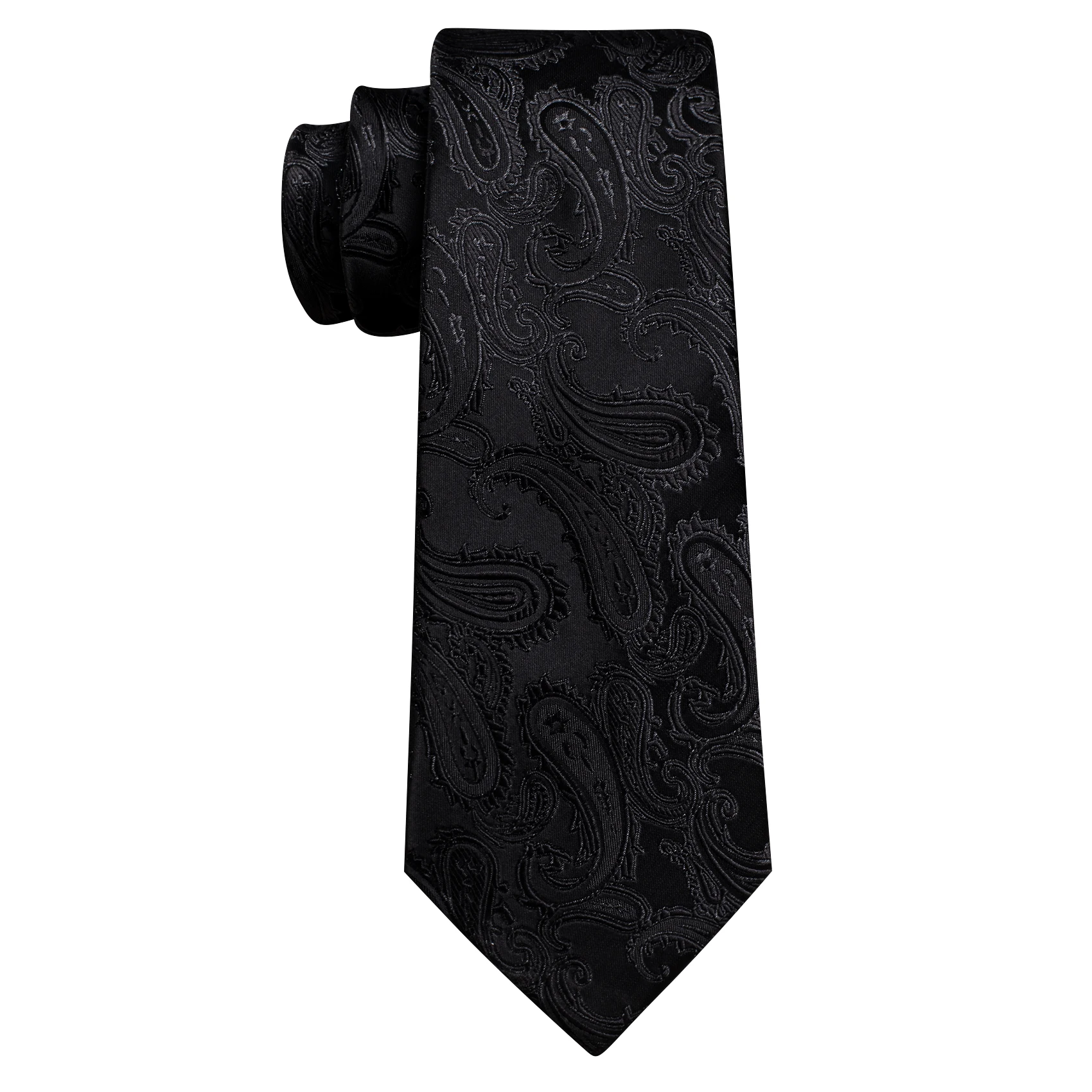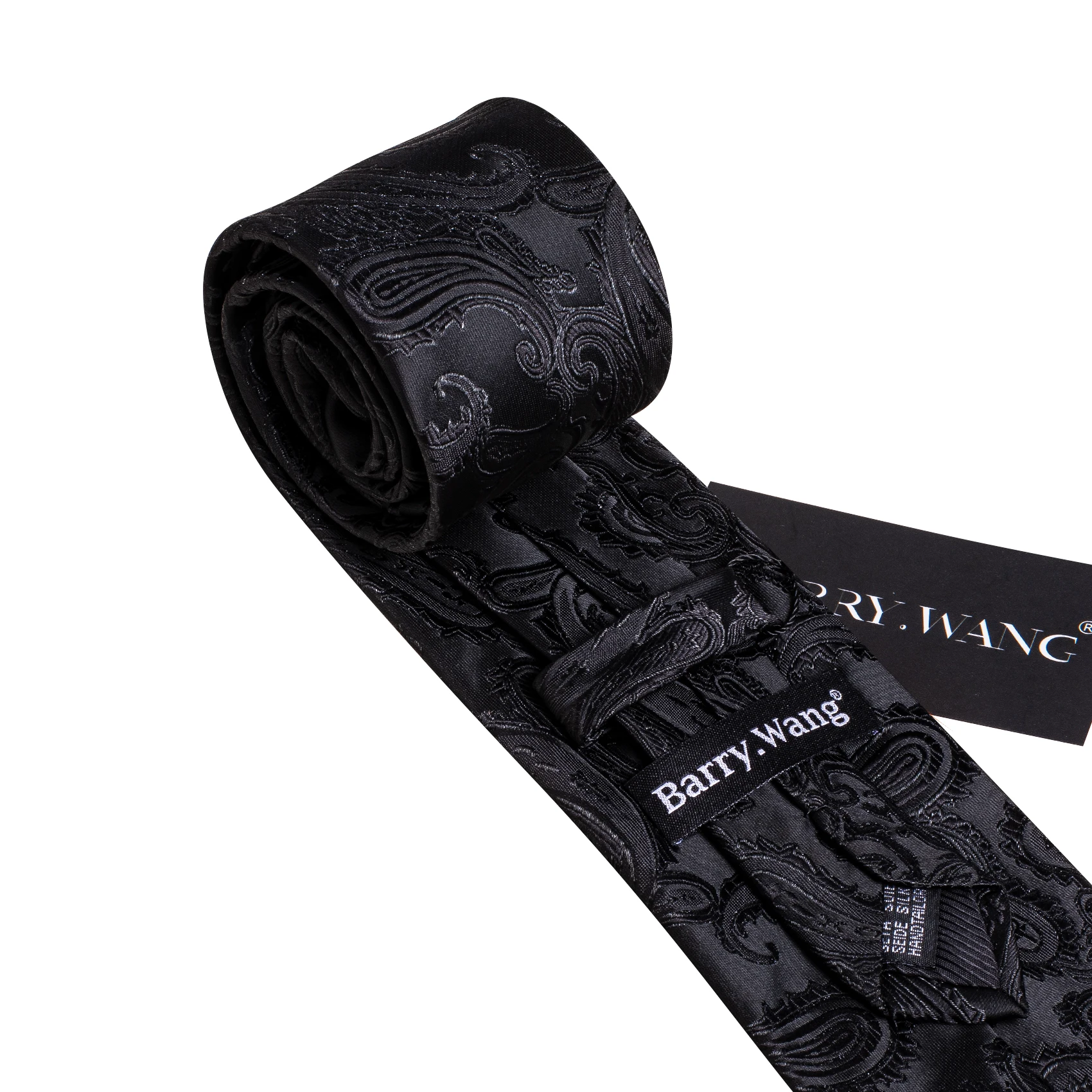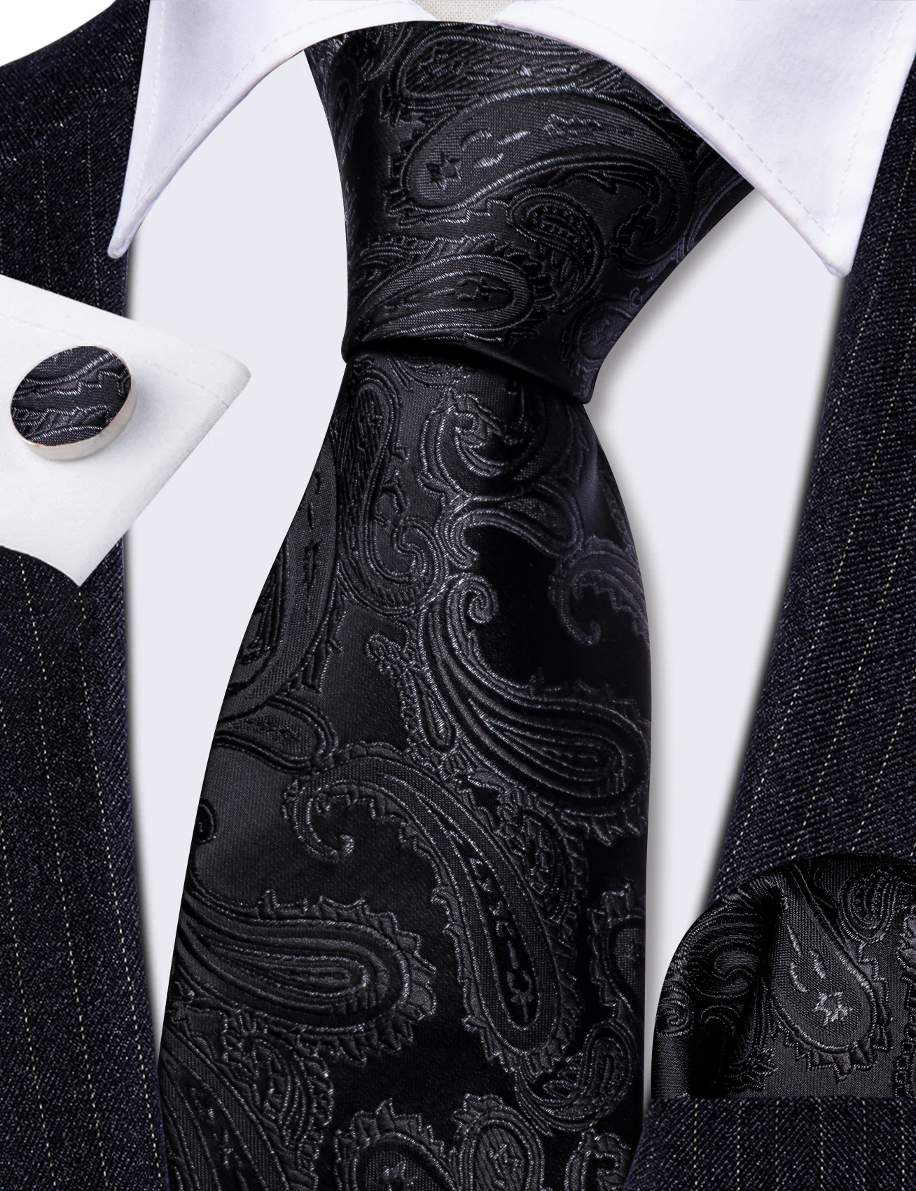 Business Black Silk Ties For Men Classic Solid High Quality Woven Pocket Square Cufflinks Sets Party Formal Designer Barry Wang