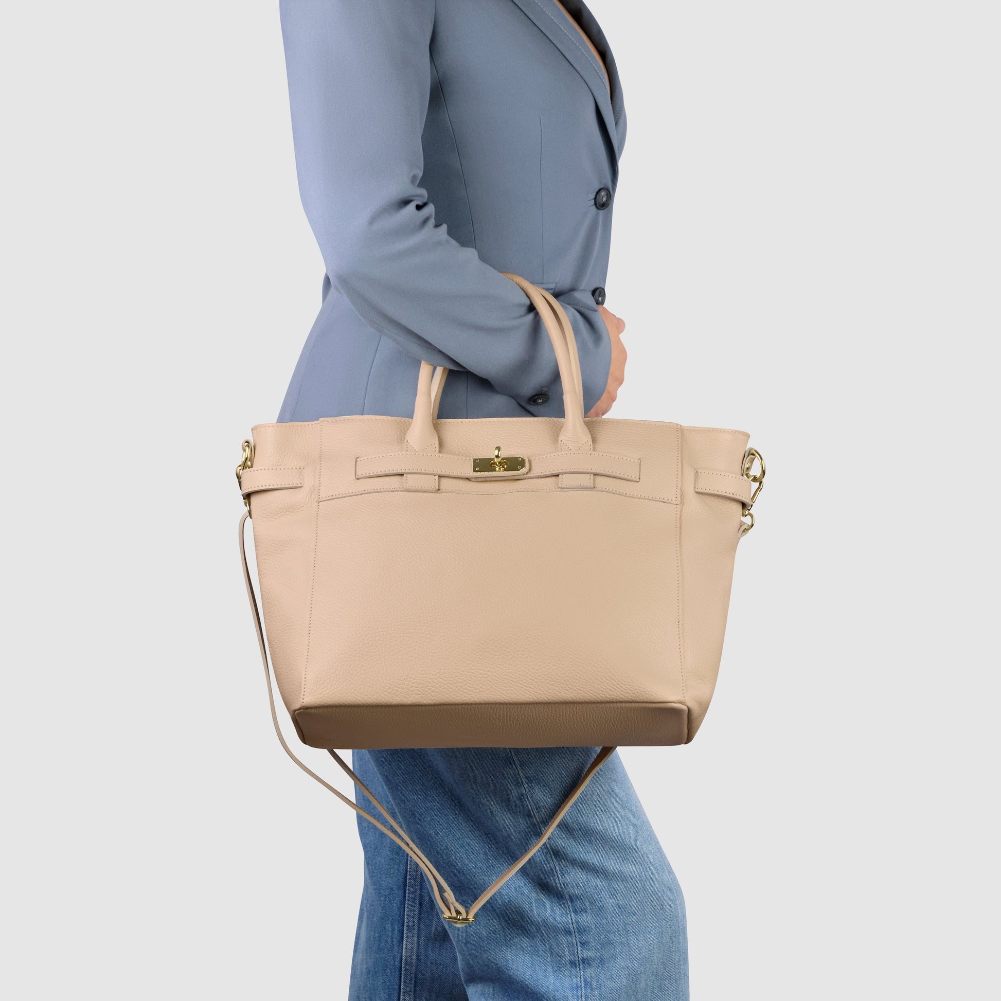 Discover refined everyday luxury with this Italian-crafted tote bag from TAKEASY. Made of genuine pebbled calf leather with a naturally soft and supple feel, it blends relaxed elegance with functional design.