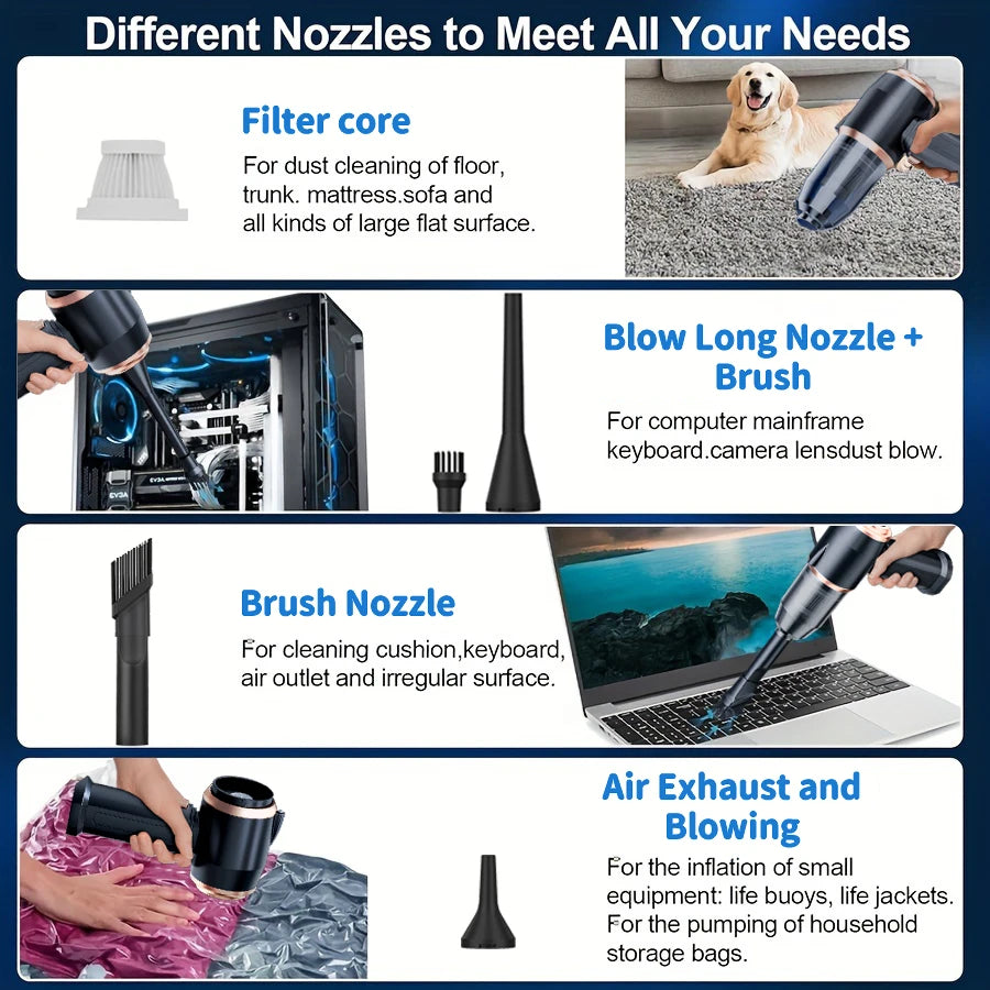 Car Vacuum Cleaner Strong Suction Cleaning Mini Machine Wireless Portable Handhled Blower Machine Air Duster for Home Appliances