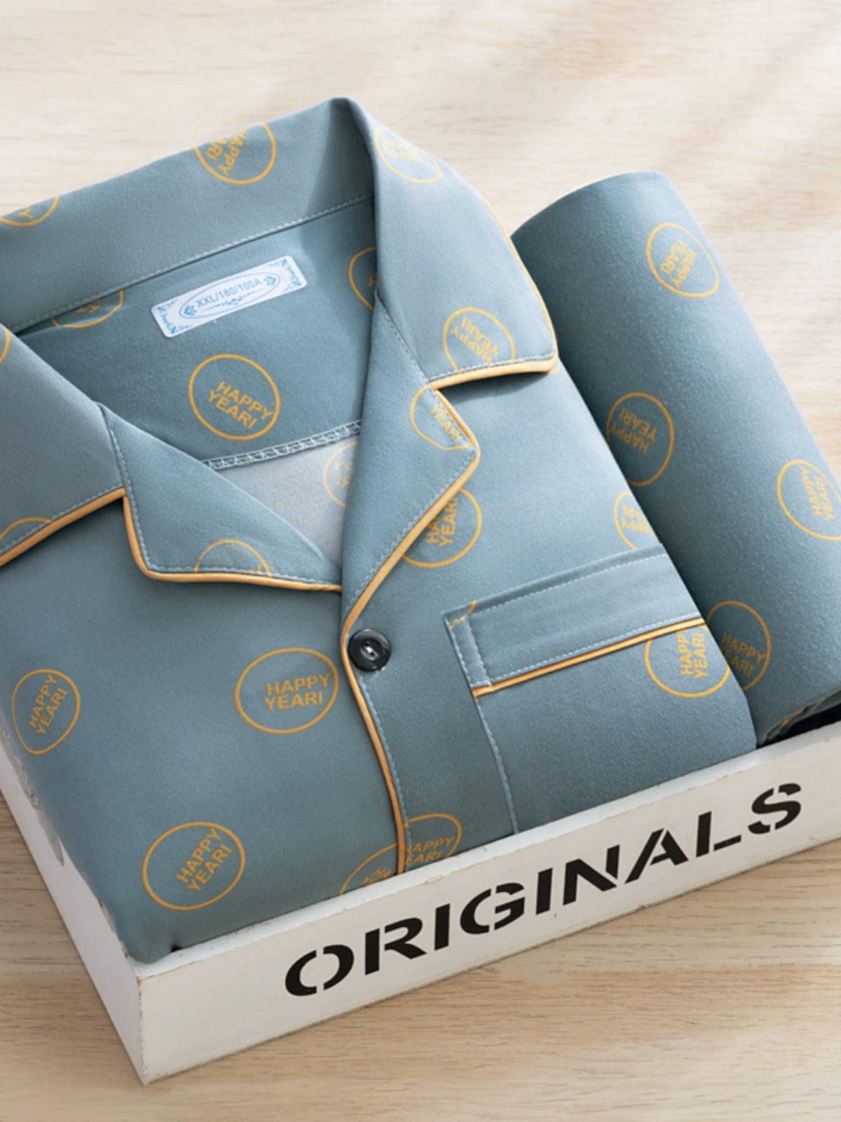 Introducing the ultimate two-piece set for the modern man who values comfort and style. These Casual Men's Pajamas are made of a soft, perfect for year-round wear. With a simple yet eye-catching design featuring printed details, a small lapel collar, and long sleeves with a unique letters/numbers/text design, these pajamas will make you stand out in style. The lightweight fabric, weighing less than 200g, ensures maximum comfort without sacrificing on style. The elastic waistband adds to the comfort factor, making this a perfect home wear style. Don't miss out on this must-have item for Middle-aged Men looking for a stylish and comfortable pajama set this spring. Order today!