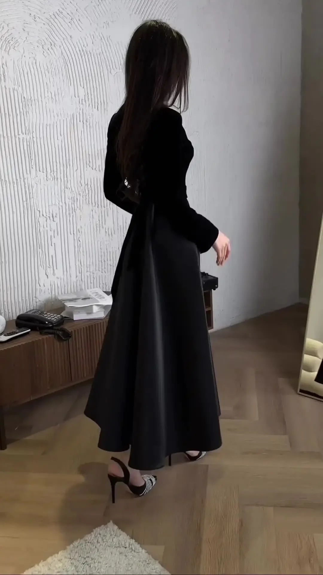 Casual Solid Long Sleeve Velvet Slim Sexy Waist Dress for Women