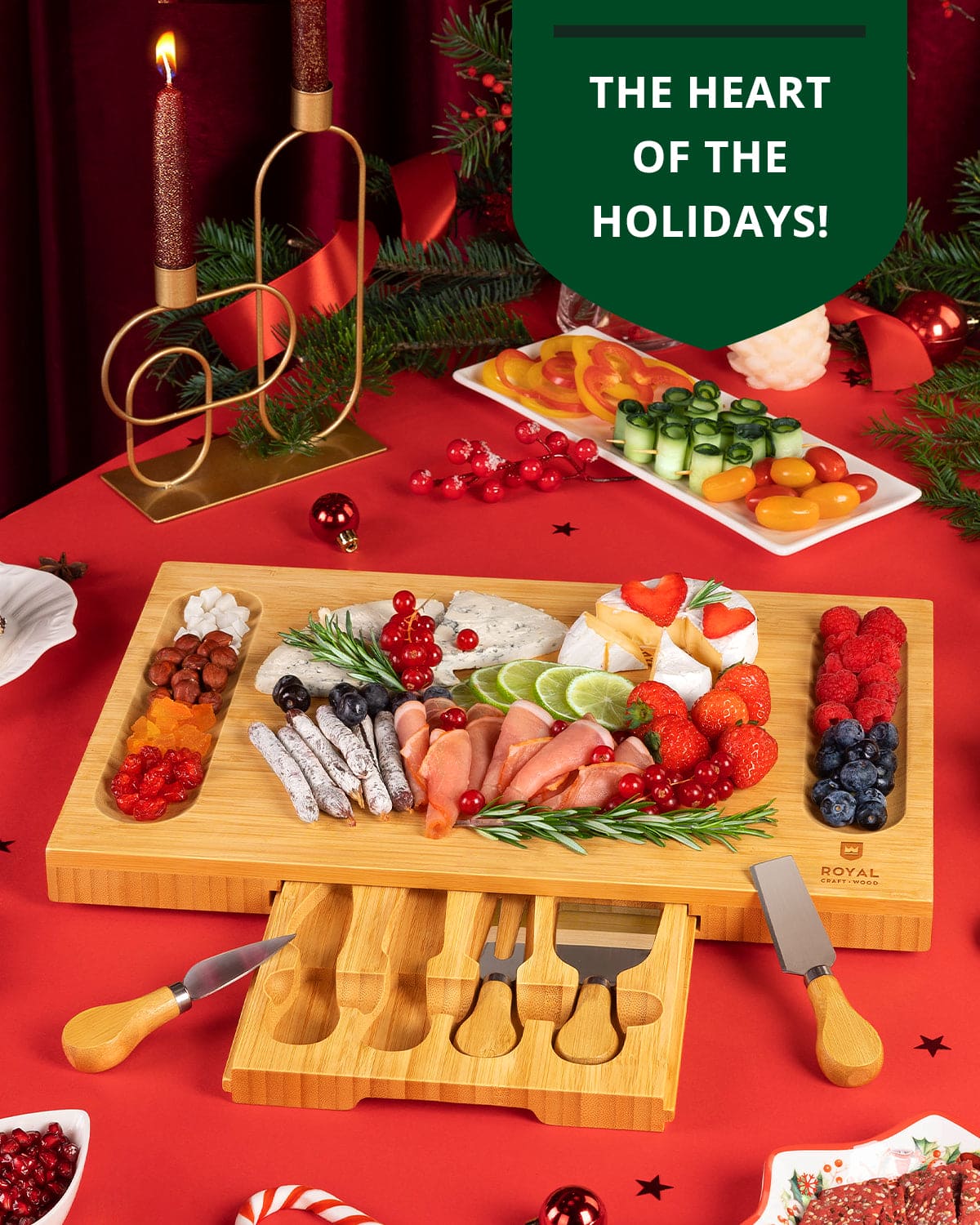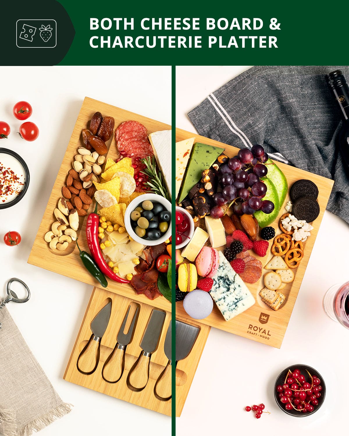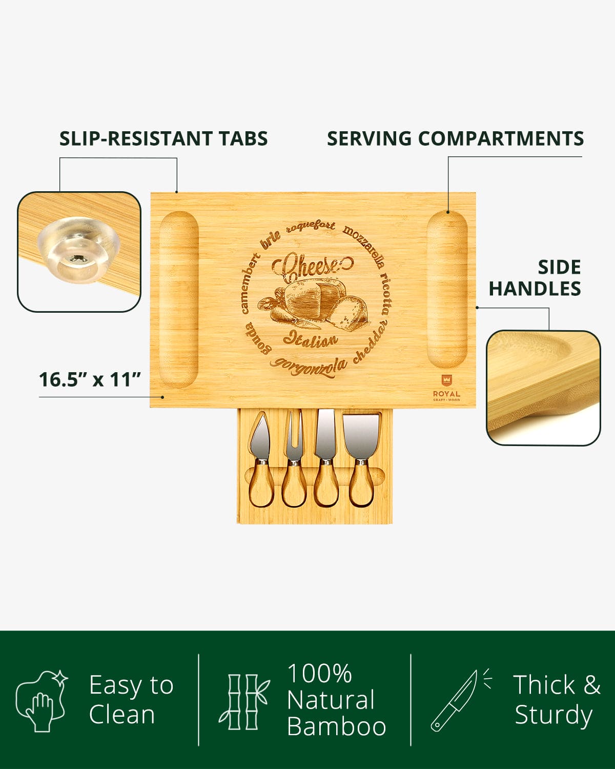 Entertain with confidence using this sophisticated Cheese Board featuring a spacious 16.5"x11" design and complementary serving knives. The substantial work surface provides ample room for curating impressive displays of artisanal selections, while the included knives ensure precise, elegant serving. Whether you're hosting wine tastings, holiday gatherings, or casual get-togethers, this board becomes the centerpiece of your entertaining experience. Crafted for both functionality and style, it transforms simple cheese and charcuterie into a refined culinary presentation—elevate your hosting game and create moments your guests will remember.
