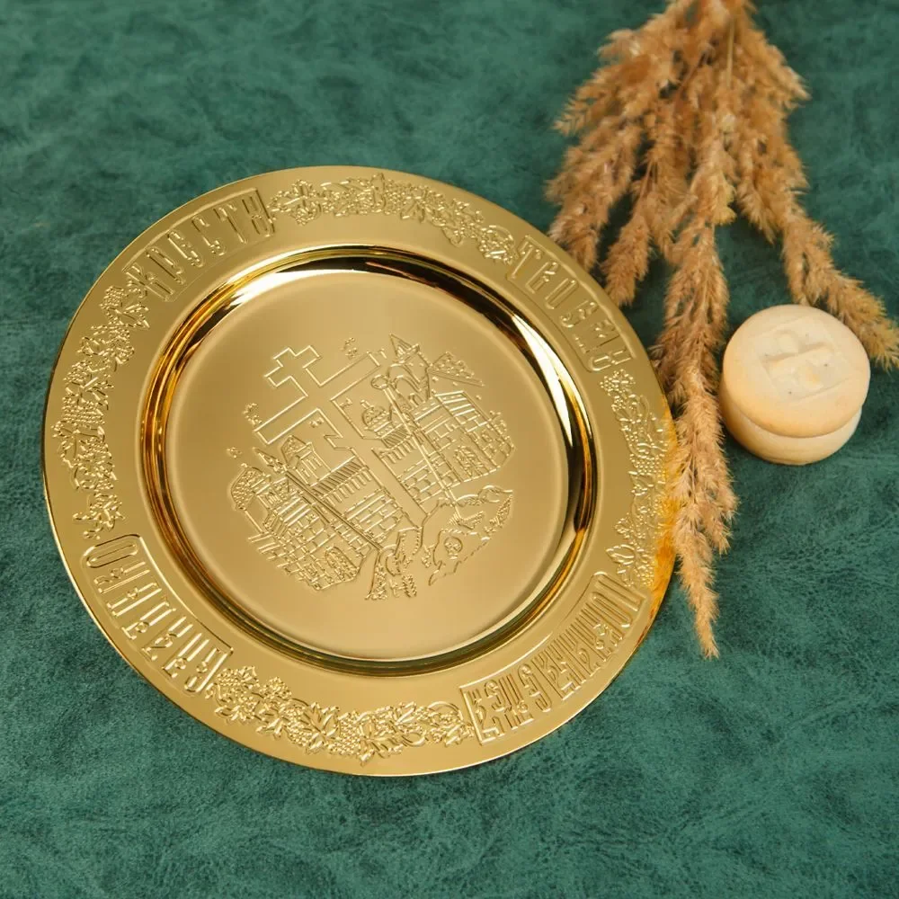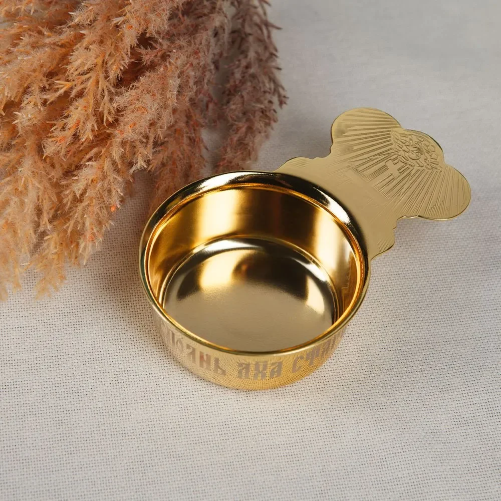 Ignite your belief in the power of baptism with our Church Product Baptismal Supplies Gold Plated Holy Grail Plate Spoon Religious Ritual Accessories Holy Water Set. Crafted from high-quality metal, this set from Mainland China is perfect for any religious ritual. Choose to elevate your spiritual experience with our carefully chosen, chemical-free materials.