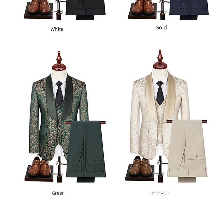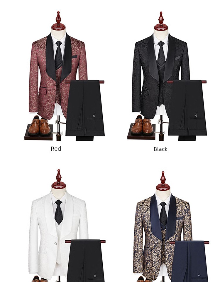 Classy Men's Three-Piece Suit Set Pattern K-style Host Performance Dress Wedding Groom Clothing
