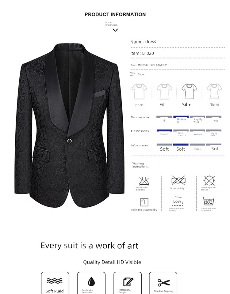 Elevate any occasion with this elegant suit set for the fashion-forward gentleman. Made with top-quality materials and meticulous craftsmanship, it radiates a bold and modern urban flair. Experience the undeniable charm of the timeless floral pattern and sophisticated single-breasted closure, enhanced by the bonded lining technique for a flawless fit. This versatile set from the weave brand offers a classicollar or regular collar option, making you stand out with confidence. Don't miss out on the chance to impress and turn heads in this trendy and chic suit set.