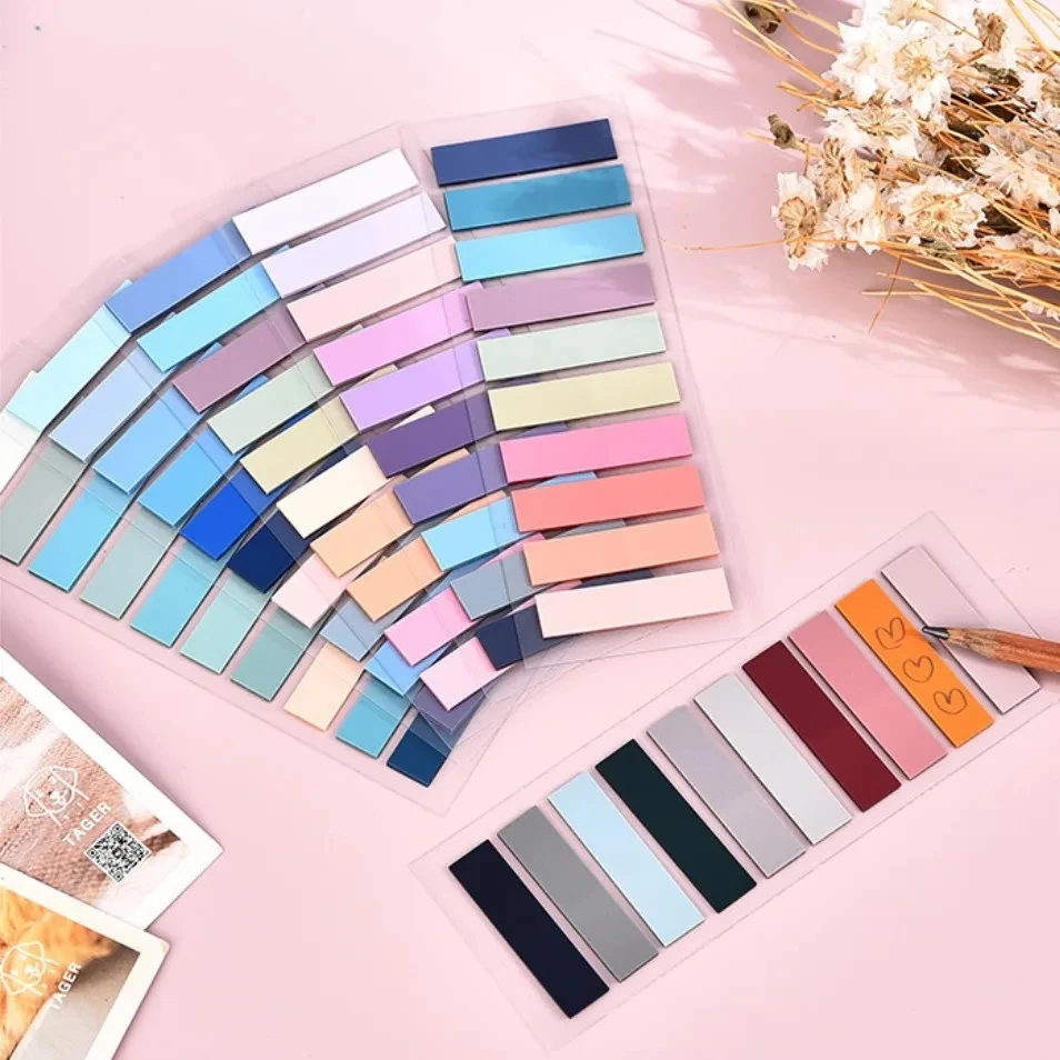 Expertly organize your notes with Colorful Sticky Index Tabs Notes Memoranda. Each 1.1*4.5cm sheet features a 1.1*2.5cm peel and stick area, allowing for clear marking and classification. Made of colored PET translucent material, these sticky notes are convenient for data organization, important matters marking, and document classification. With multiple colors per pack, they are perfect for repeated use without damaging paper. Note: Allow ink to dry before touching when using a water-based pen. Available in 6-pack or 12-pack options.