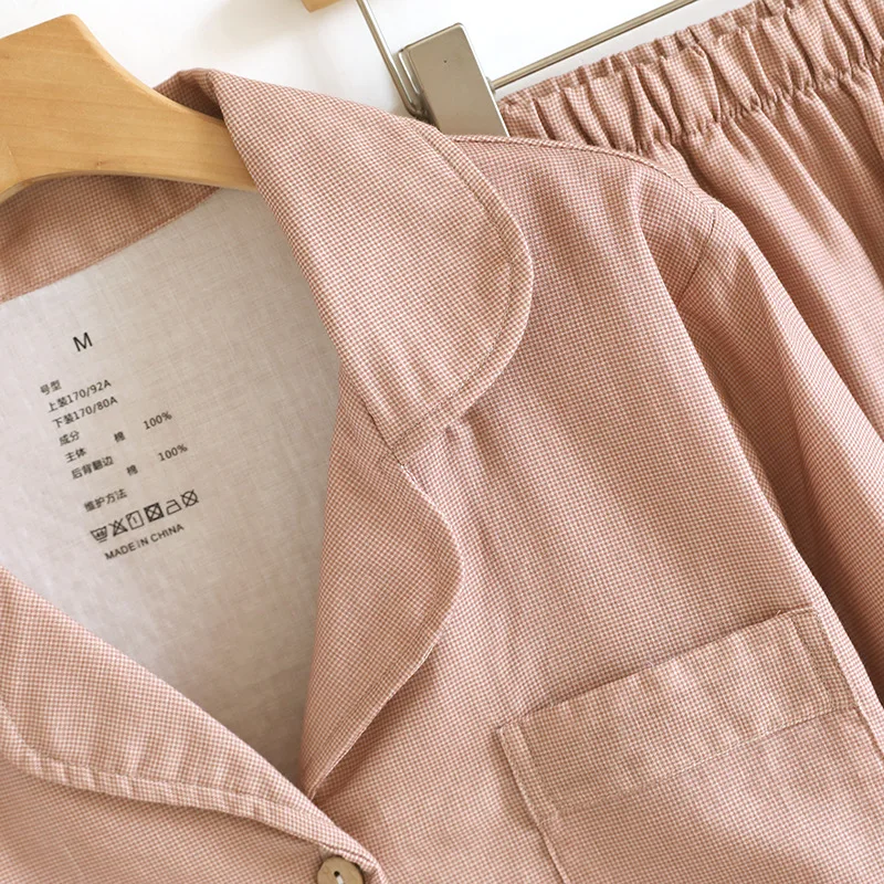 Comfortable Cotton Couples Pajamas Set for Autumn Color Woven Loose Long Sleeved Pants