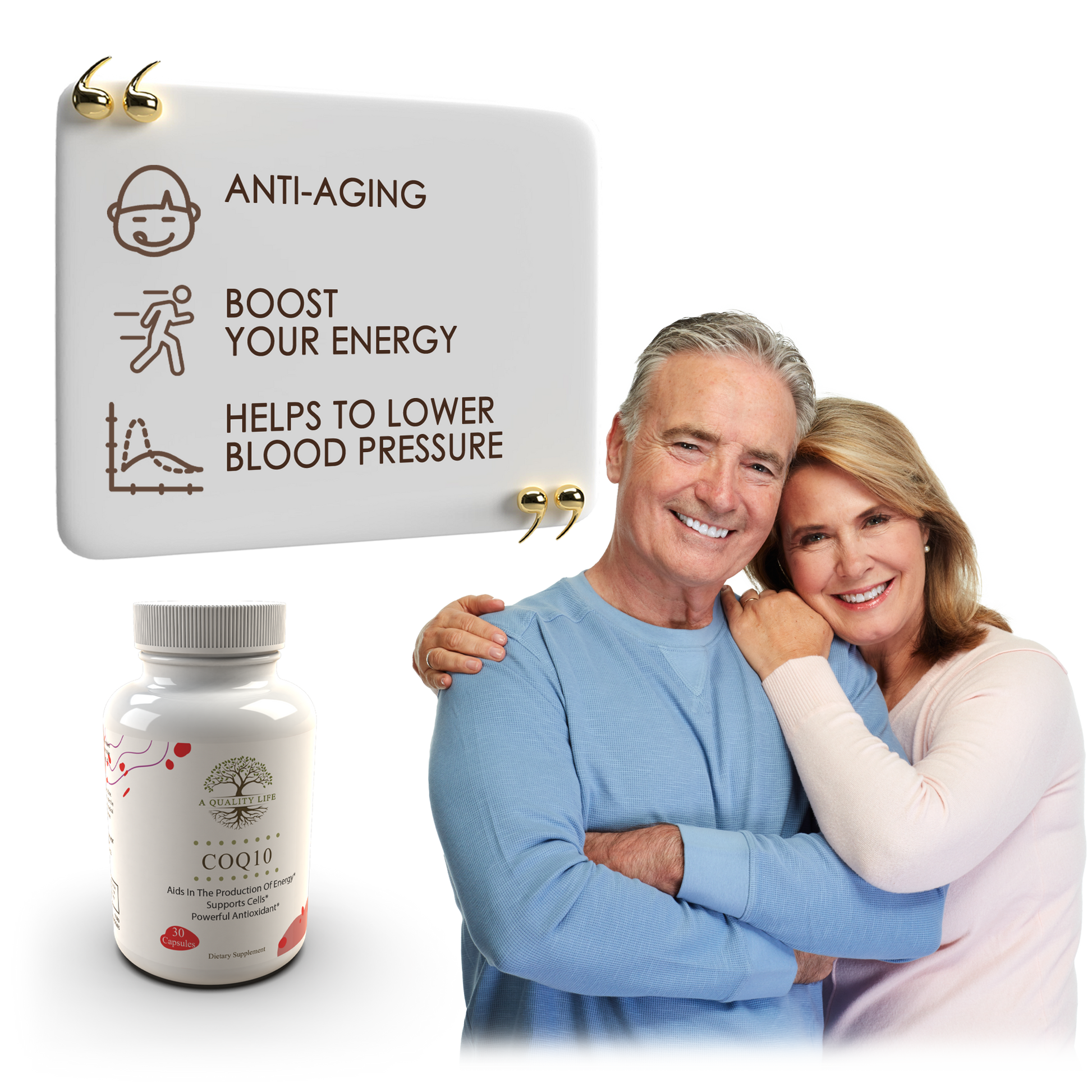 Our CoQ10 supplement is a rich source of antioxidants that help combat free radicals, which are often linked to aging. It provides the necessary defense against oxidative stress.