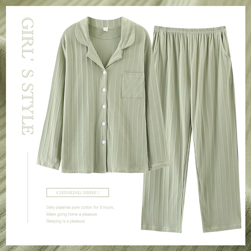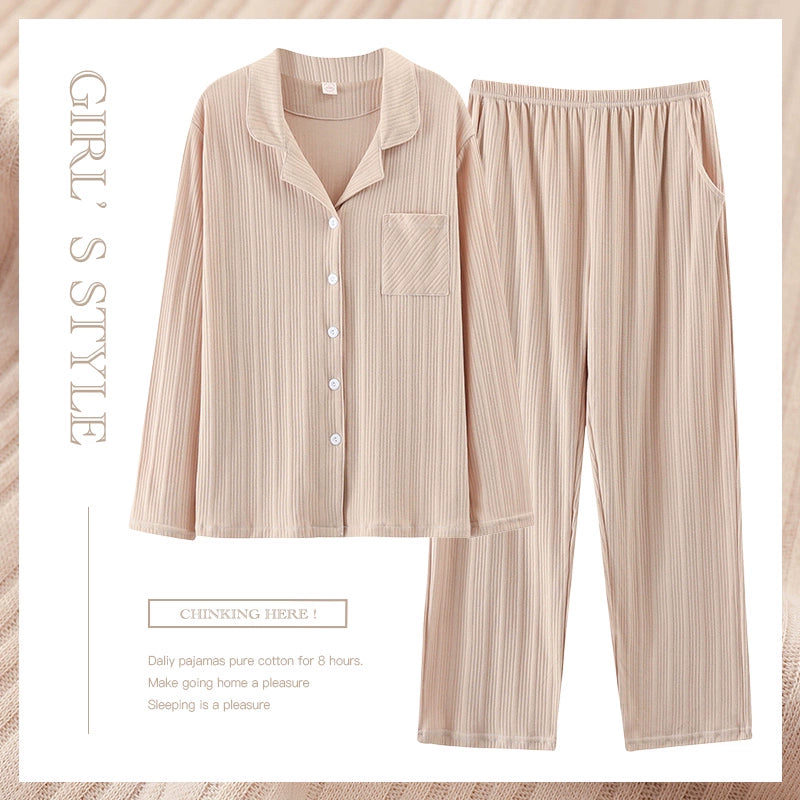 Embrace cozy elegance with our Cotton Couple Pajamas, designed for both men and women to enjoy ultimate comfort together. These lightweight pure cotton sets feature charming plaid patterns and stylish small lapels that elevate your loungewear experience. Perfect for spring and autumn, the breathable fabric (under 200g) keeps you comfortable without overheating. Each two-piece set includes convenient elastic waistband pants and long sleeves for just-right coverage. Available in plus sizes and introduced Spring, these simple yet sophisticated pajamas are ideal for youthful couples seeking quality relaxation wear.
