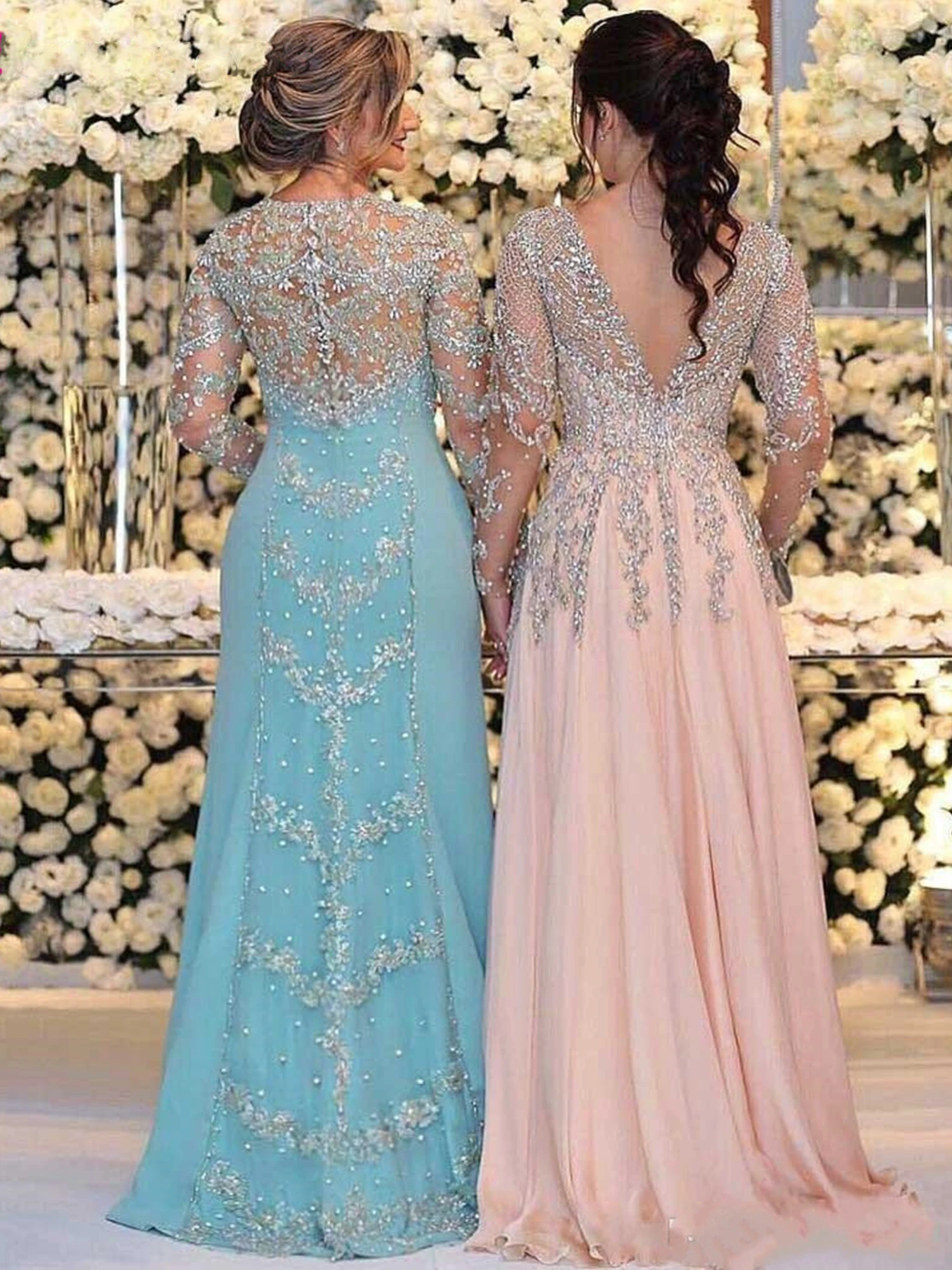 Crystal Beaded Appliques Mermaid Dress Wedding Party Dress Long Sleeves Formal Party Dresses