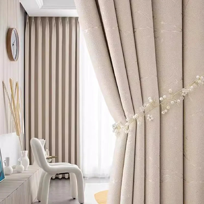 Customized Lightning Jacquard Thickened Chenille Blackout Curtains for Living Room Bedroom French Window