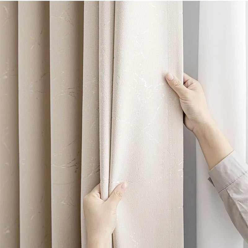 This product's description contains extensive details about our Customized Lightning Jacquard Thickened Chenille Blackout Curtains, expertly designed for French windows. Using the TAT weaving technique, these curtains feature a unique ROPE design and provide excellent shading capabilities of 70-90%. Not only are they free from harmful chemicals, but they are also easy to install on the ceiling. While they may not be a smart device, they are still the perfect choice for any window in your home, hotel, cafe, or office. Made with 100% polyester, the single panel showcases a solid, printed pattern and can be easily opened and closed by parting them to the left and right. Coming from Mainland China, these modern-style curtains are skillfully woven and have a beautiful general pleat, ensuring the perfect fit for your space. Plus, they are fully customizable and do not have a blackout coating, providing both elegance and functionality for your living room or bedroom.