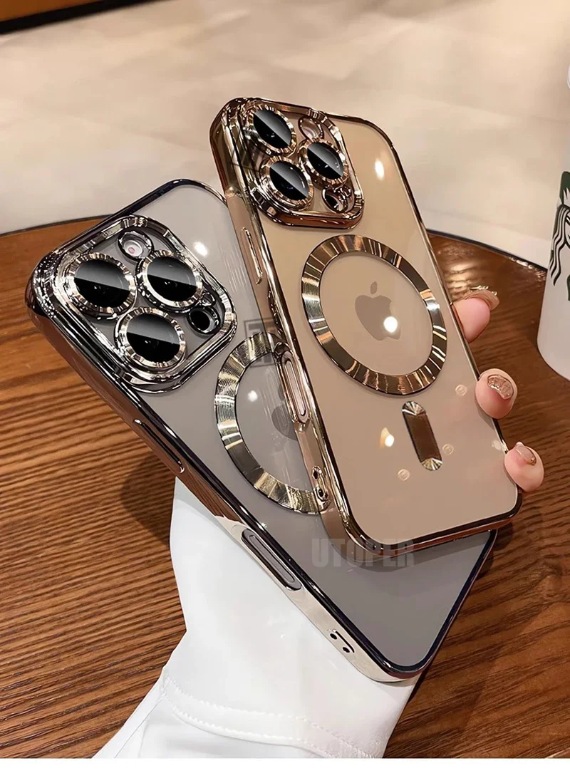 Desert Gold Case for iPhone 17 Air 16 15 14 13 12 11 Pro Max Plus, Clear Magnetic Lens Protection Soft Case