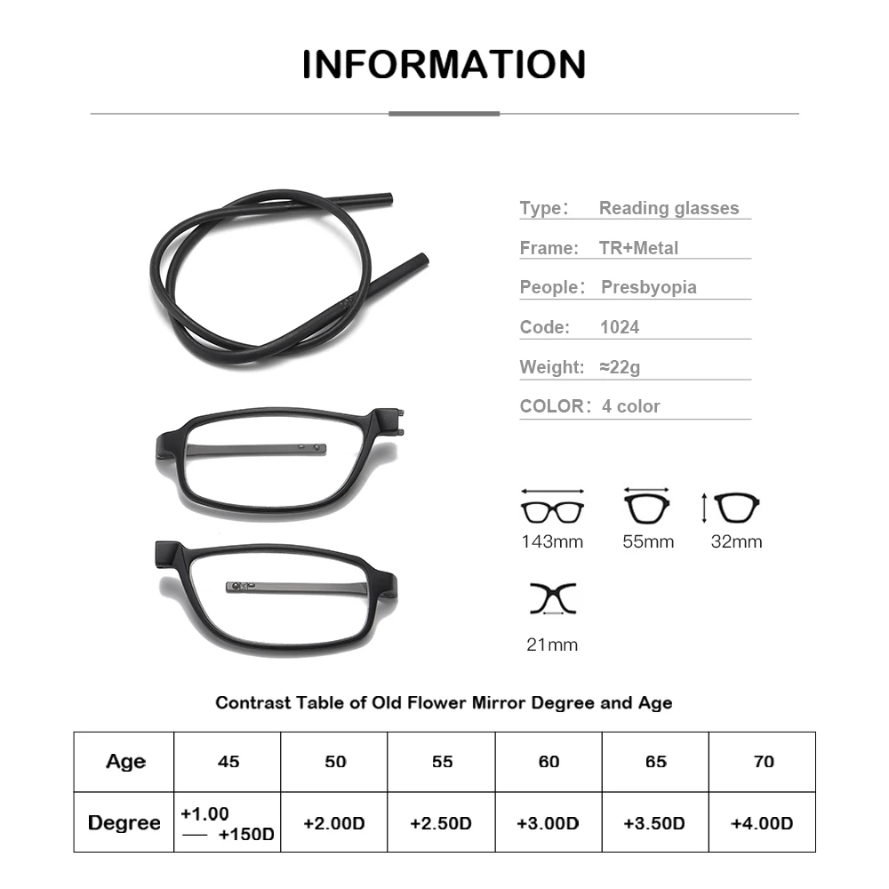 DML Ultralight Reading Men Women Glasses Hanging Stretch Anti-fatigue Presbyopia Unisex Glasses Diopter +1.5+3.5