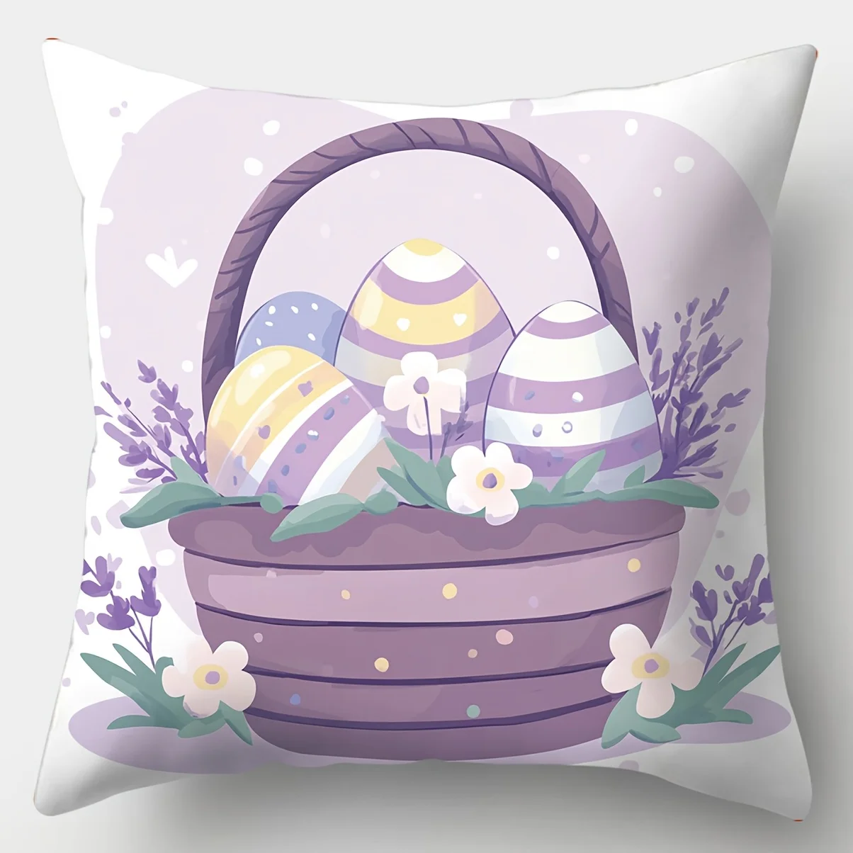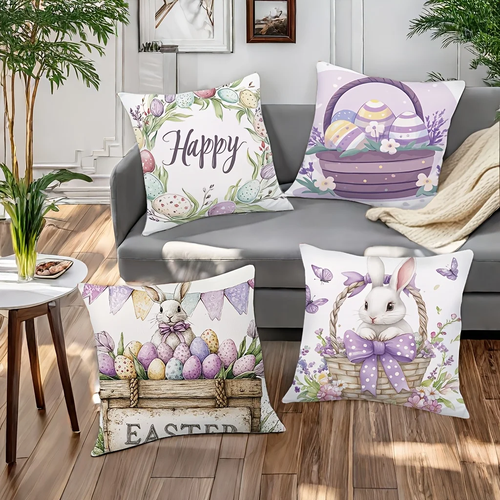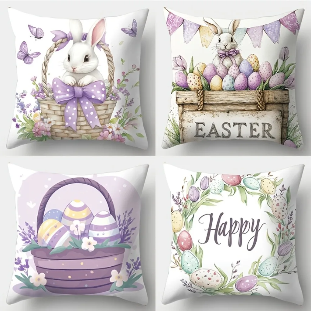 Easter Theme Bunny Printed Pillow Covers w Zipper Closure for Living Room Sofa Bedroom Decor