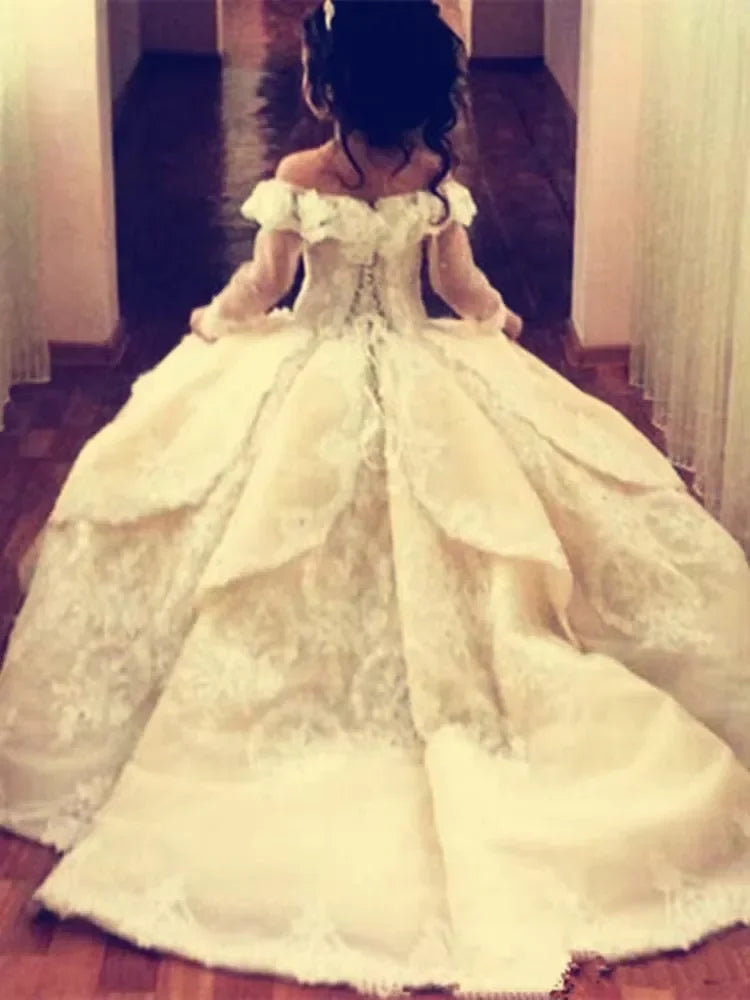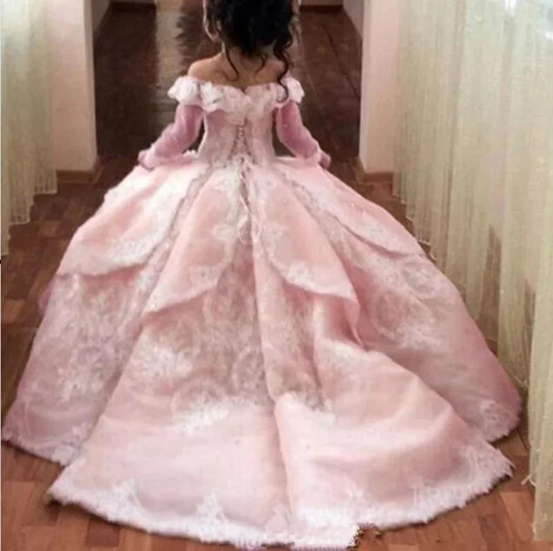 Elegant Toddler Full Sleeves Princes Gown Lace Flower Girl Dresses Sheer Flower Girl First Communion Princess Pageant