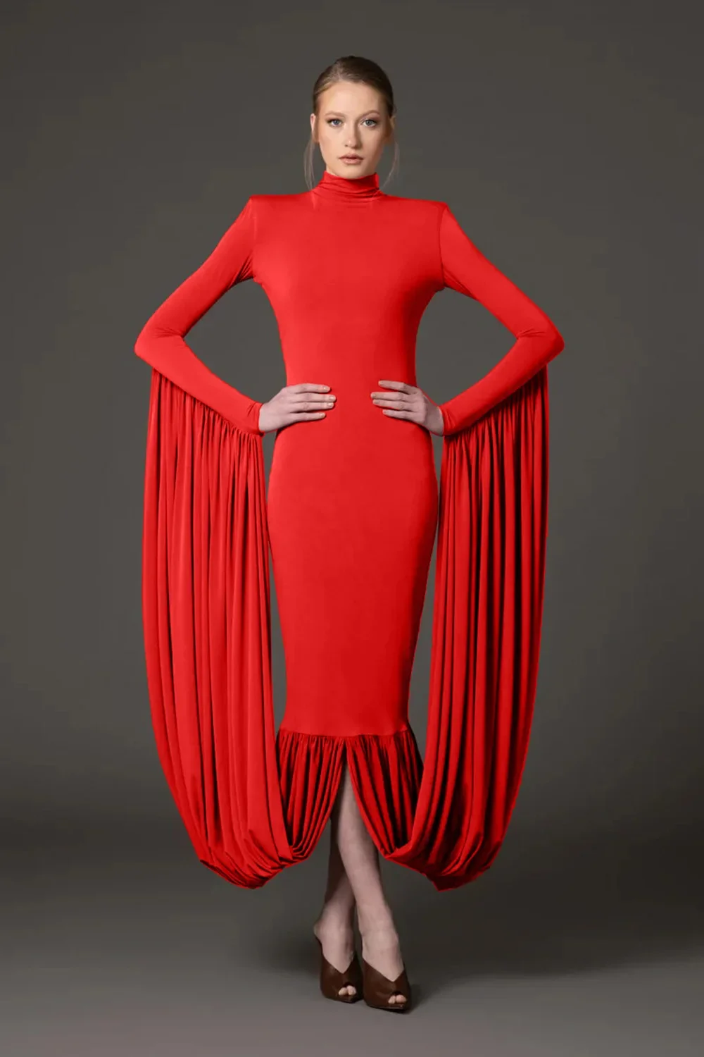 • High-End Design : This dress boasts a high-end design with a slim fit, high collar, and pleated lotus leaf details, exuding elegance and sophistication.